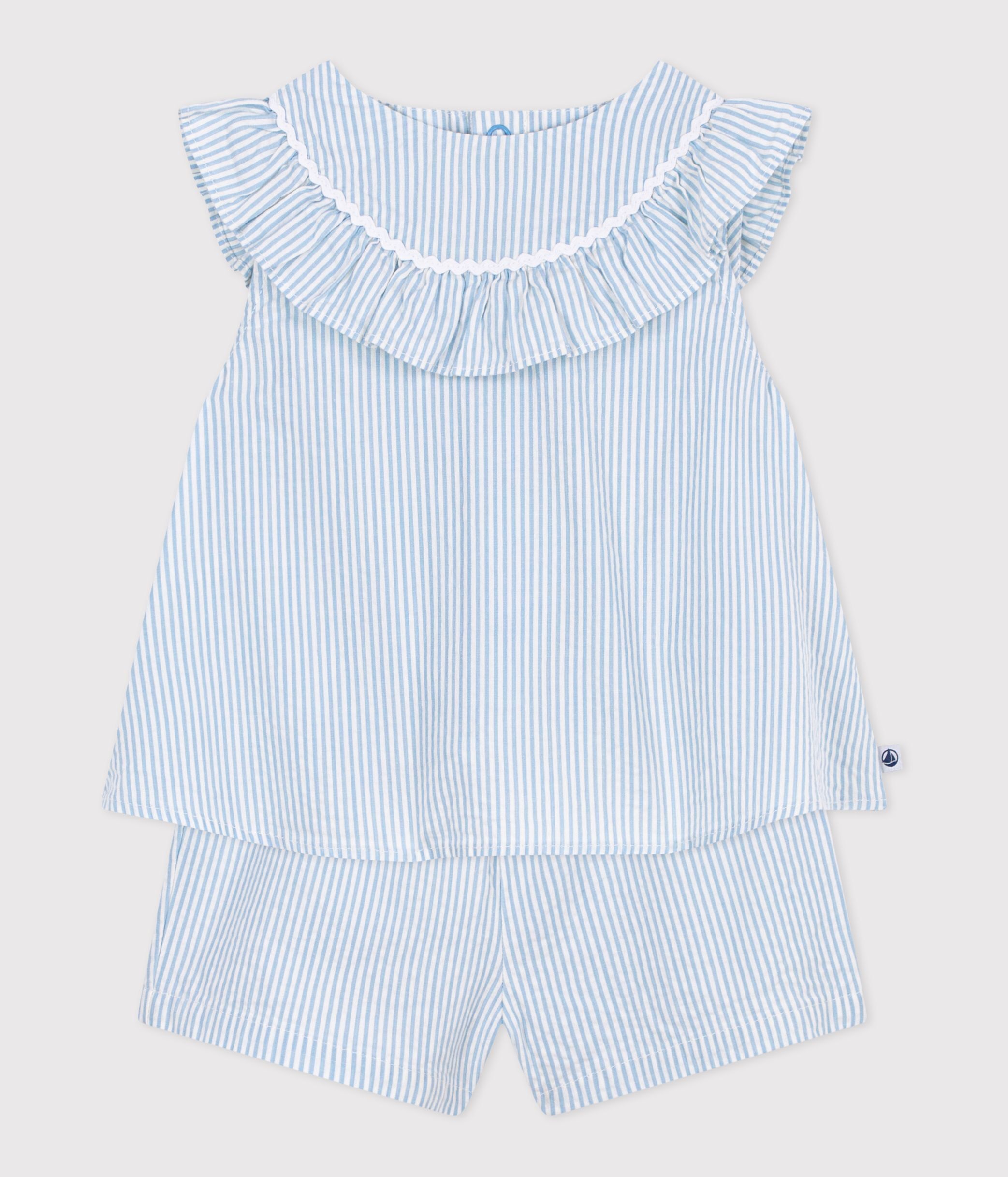 Girls' gift set in seersucker, a fine, light, supple fabric with a slighty embossed look.