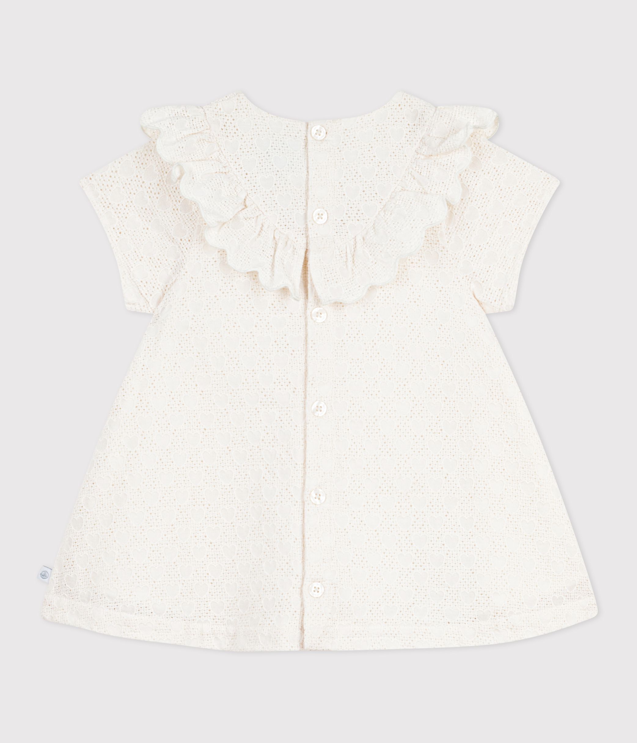 Babies' dress in broderie anglaise with short sleeves and a hearts motif