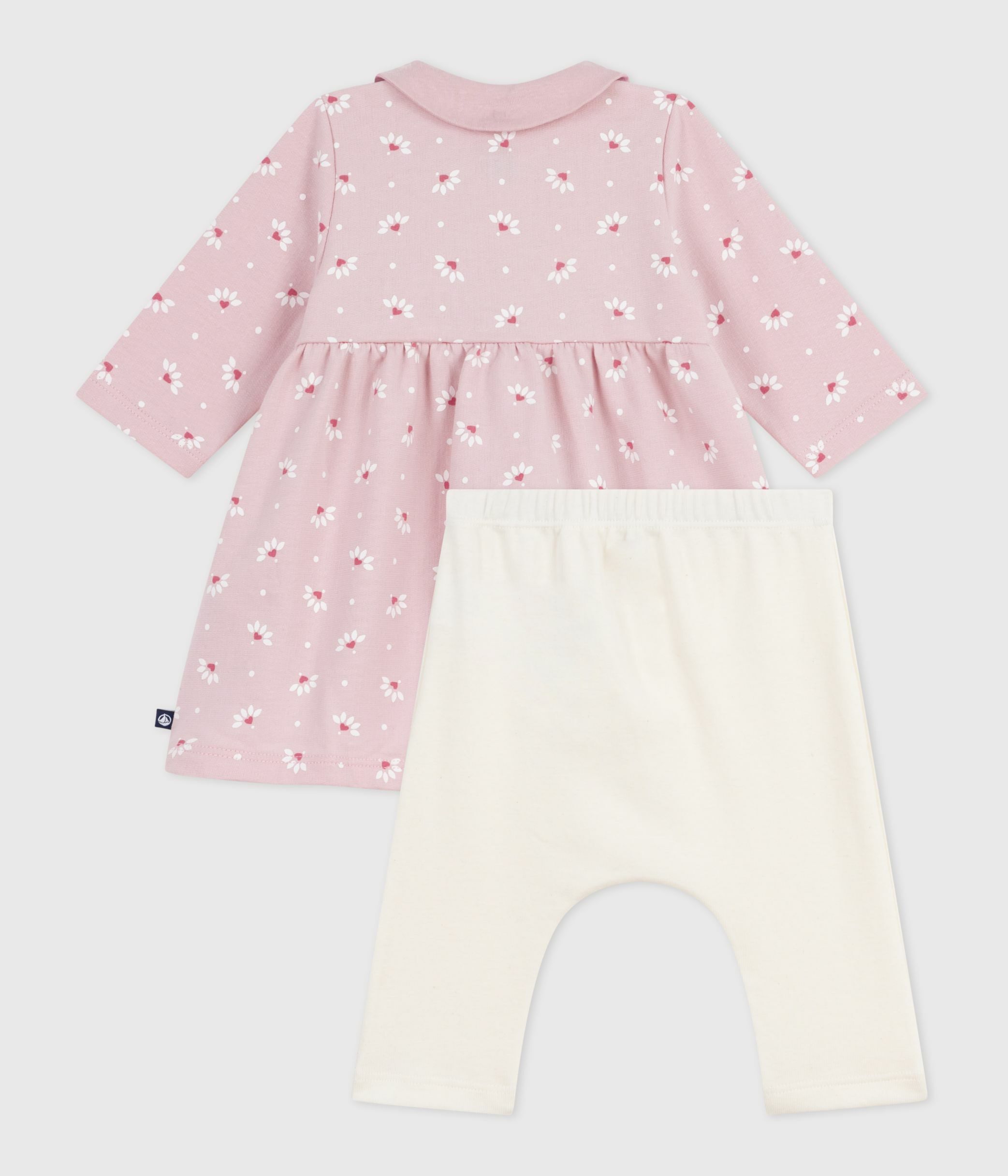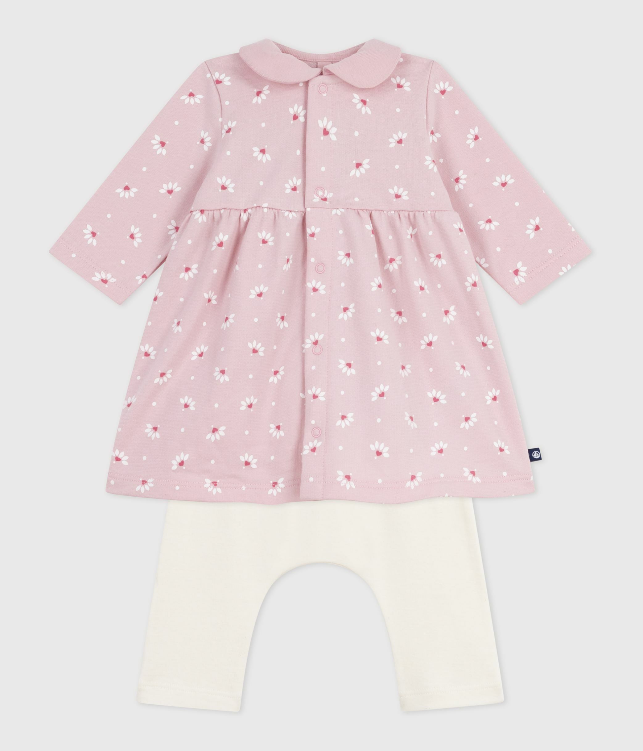 فستان للأطفال بياقة وبطبعة قلوب وزهور مع ليغينغز من القطن