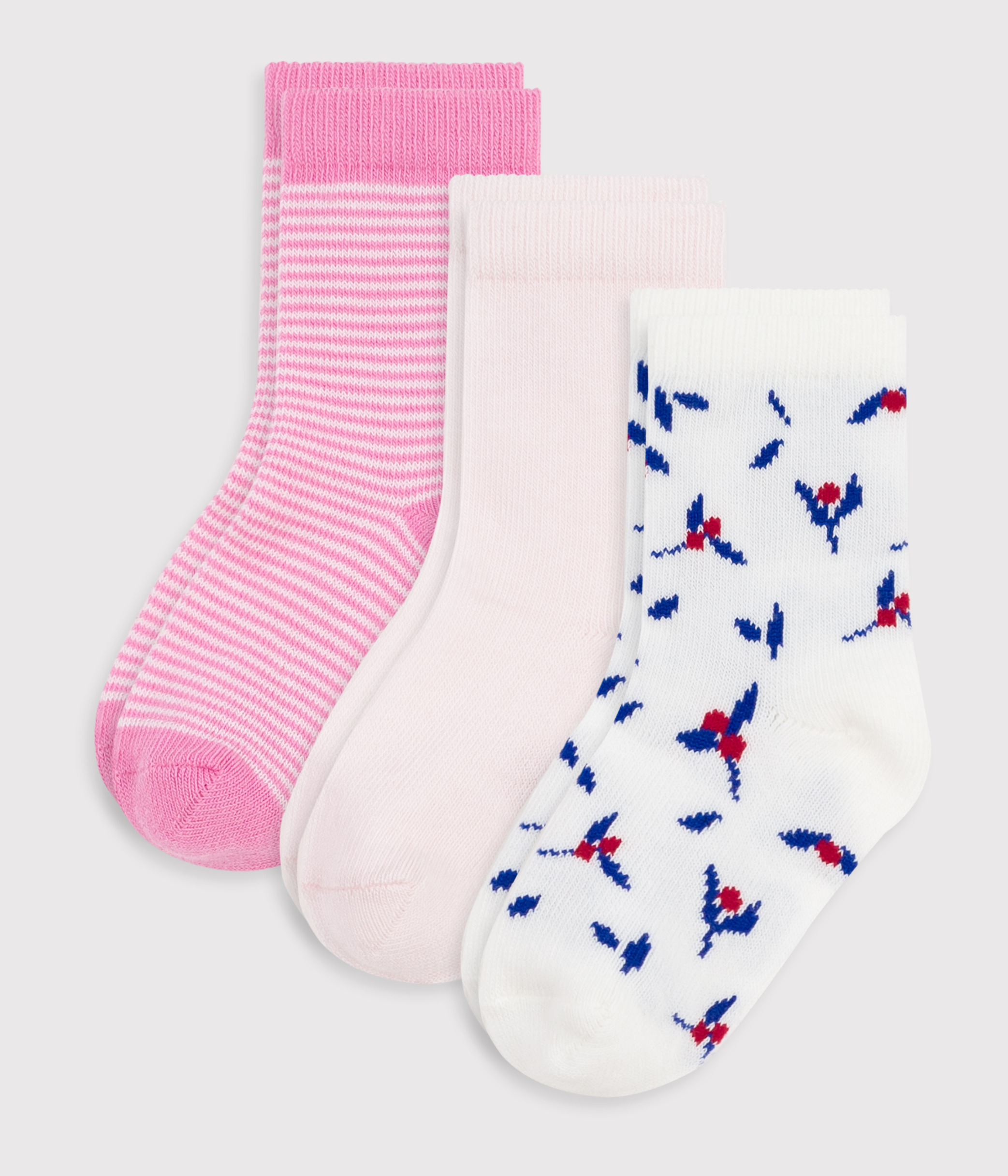 جوارب للأطفال من القطن بطبعة زهور- مجموعة من 3 قطع