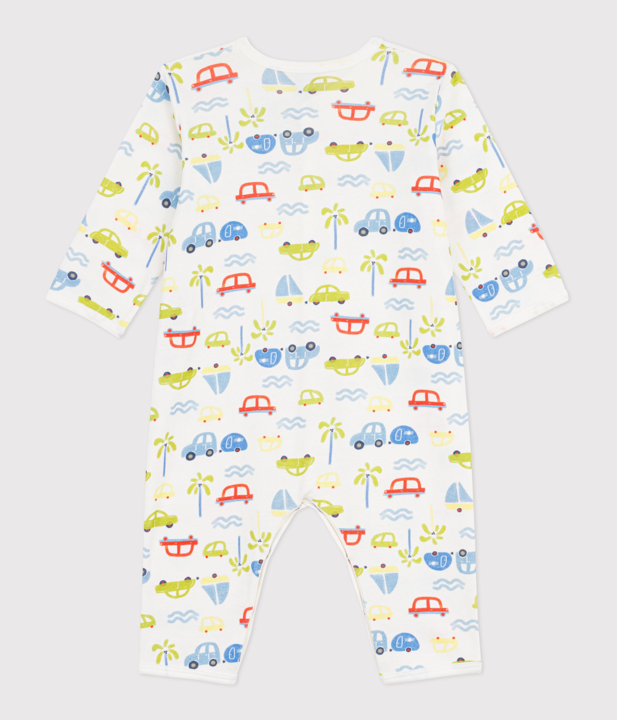 Babies' footless cotton pyjama suit with a motor car print