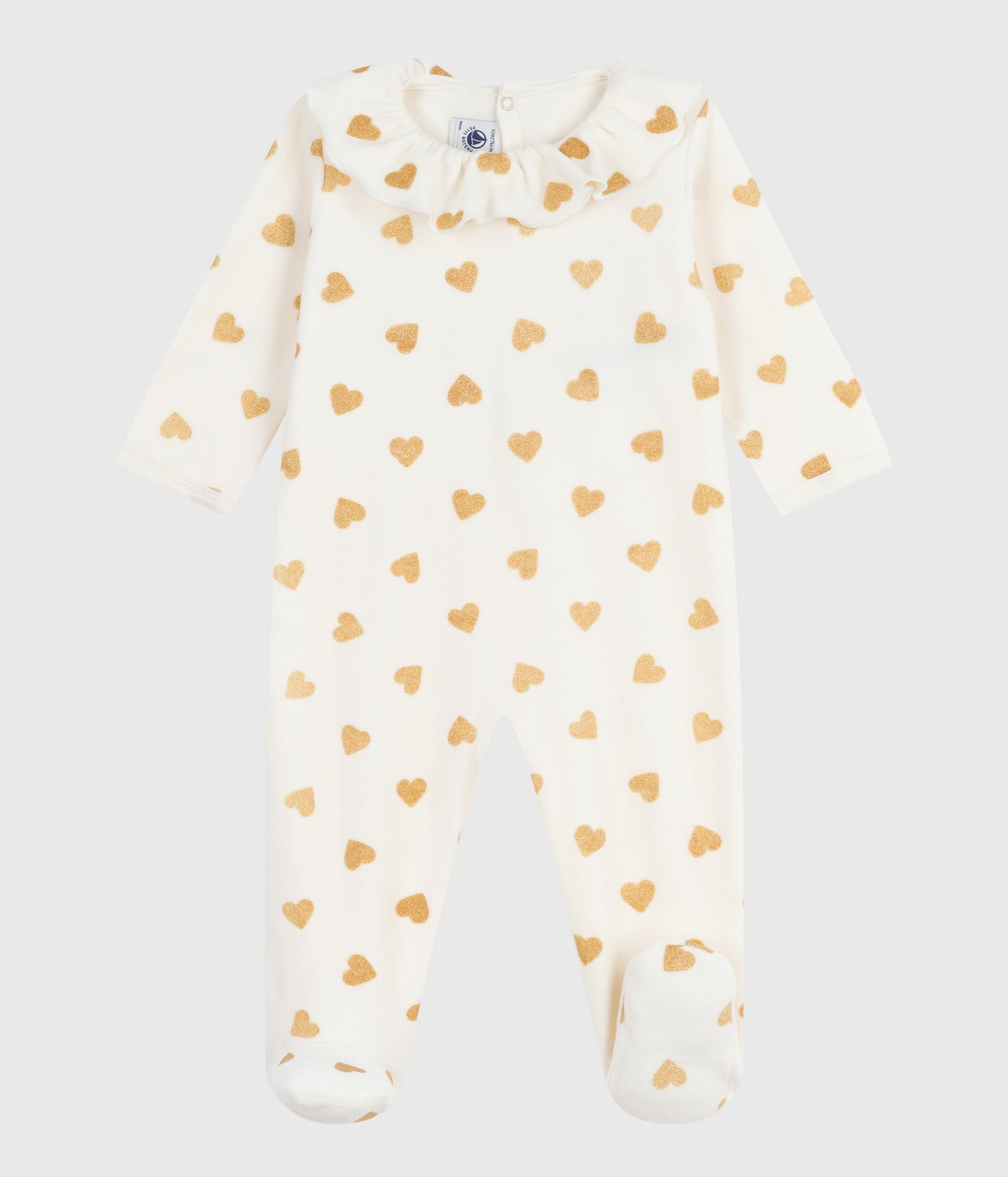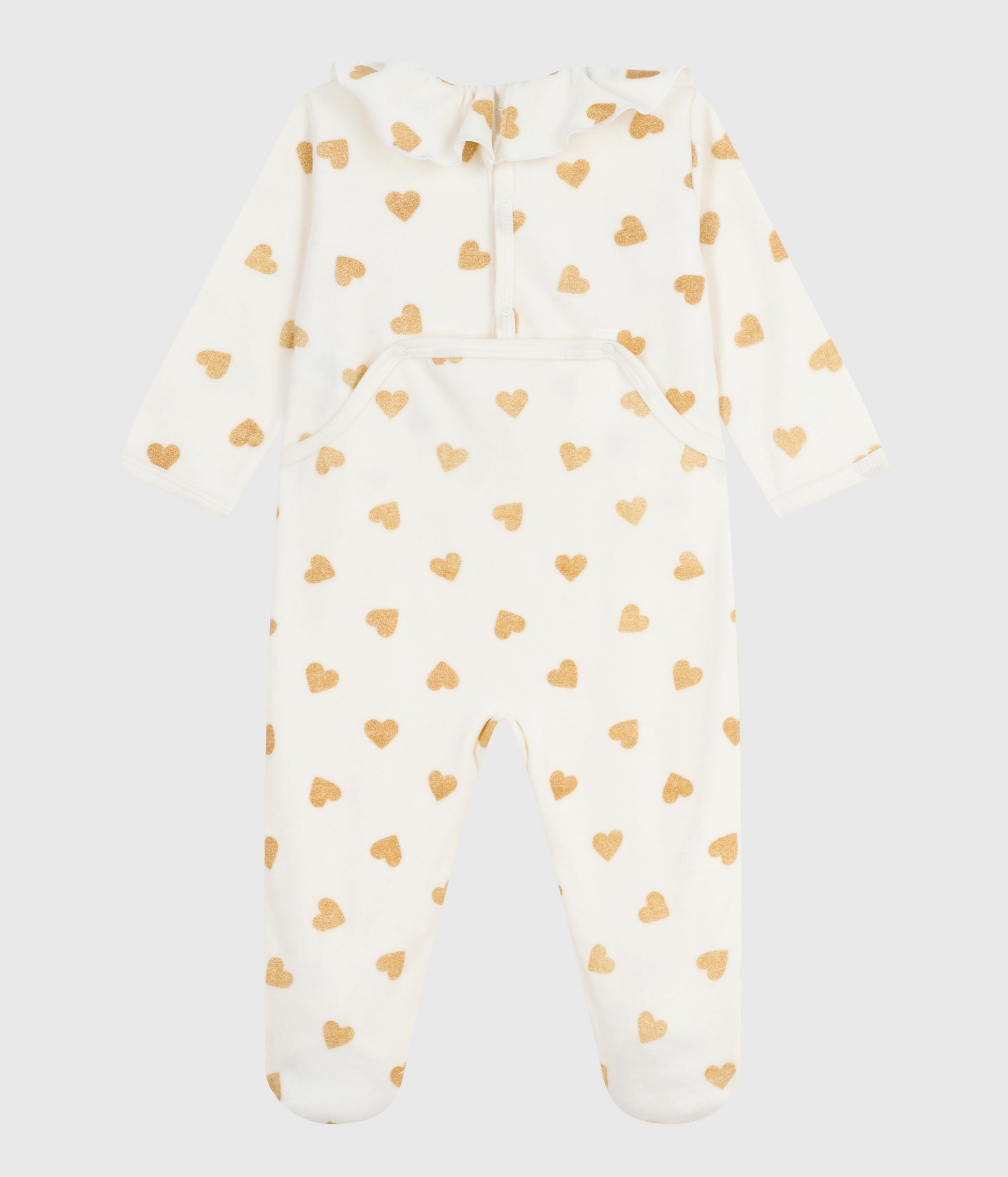 بيجاما للأطفال من المخمل بطبعة على شكل قلب ذهبي مع فتحة خلفية