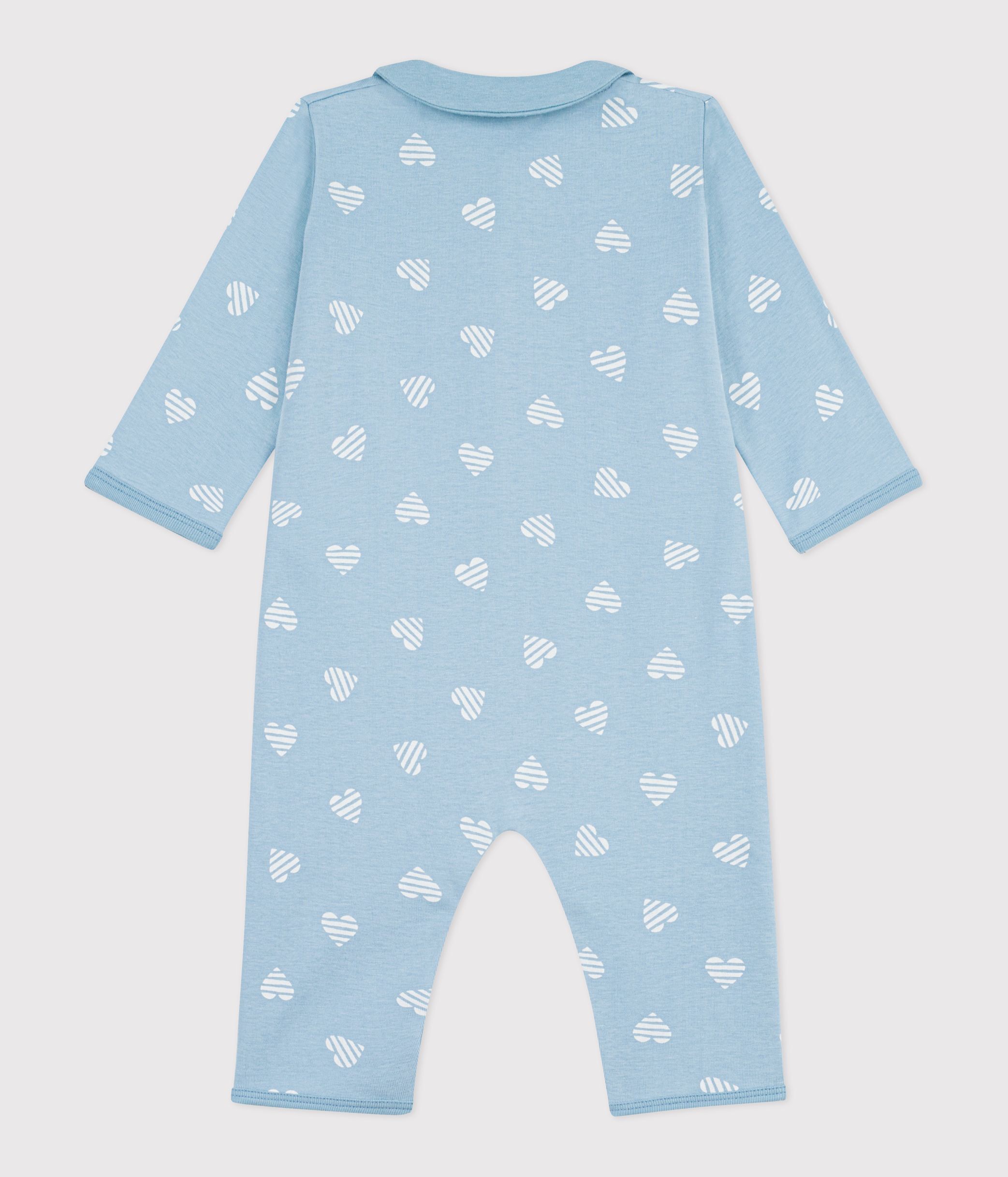 Babies' heart print footless cotton pyjama suit with a collar
