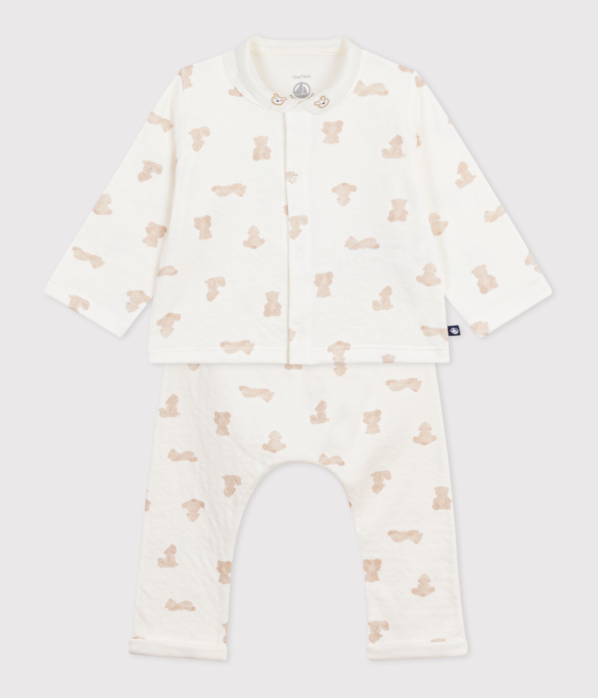 Unisex 3-piece outfit in tube-knit, a soft, comfy fabric, ideal for both summer and winter.