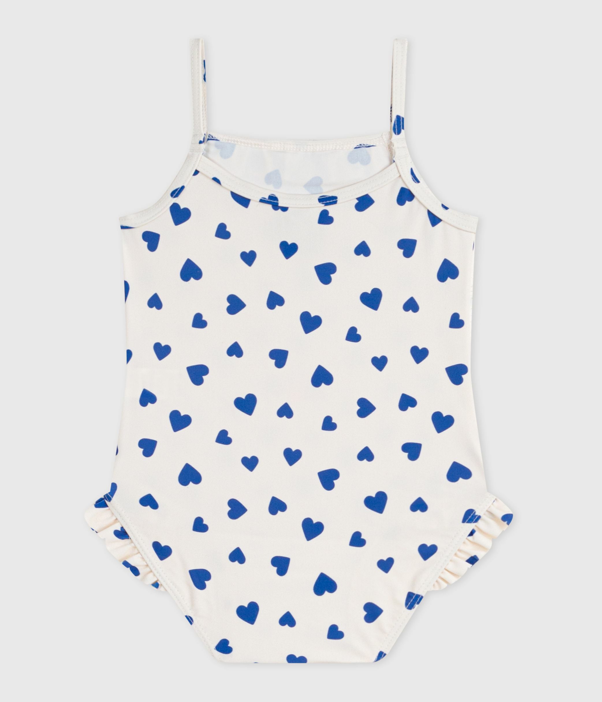 Babies' one-piece heart print ruffled swimsuit.