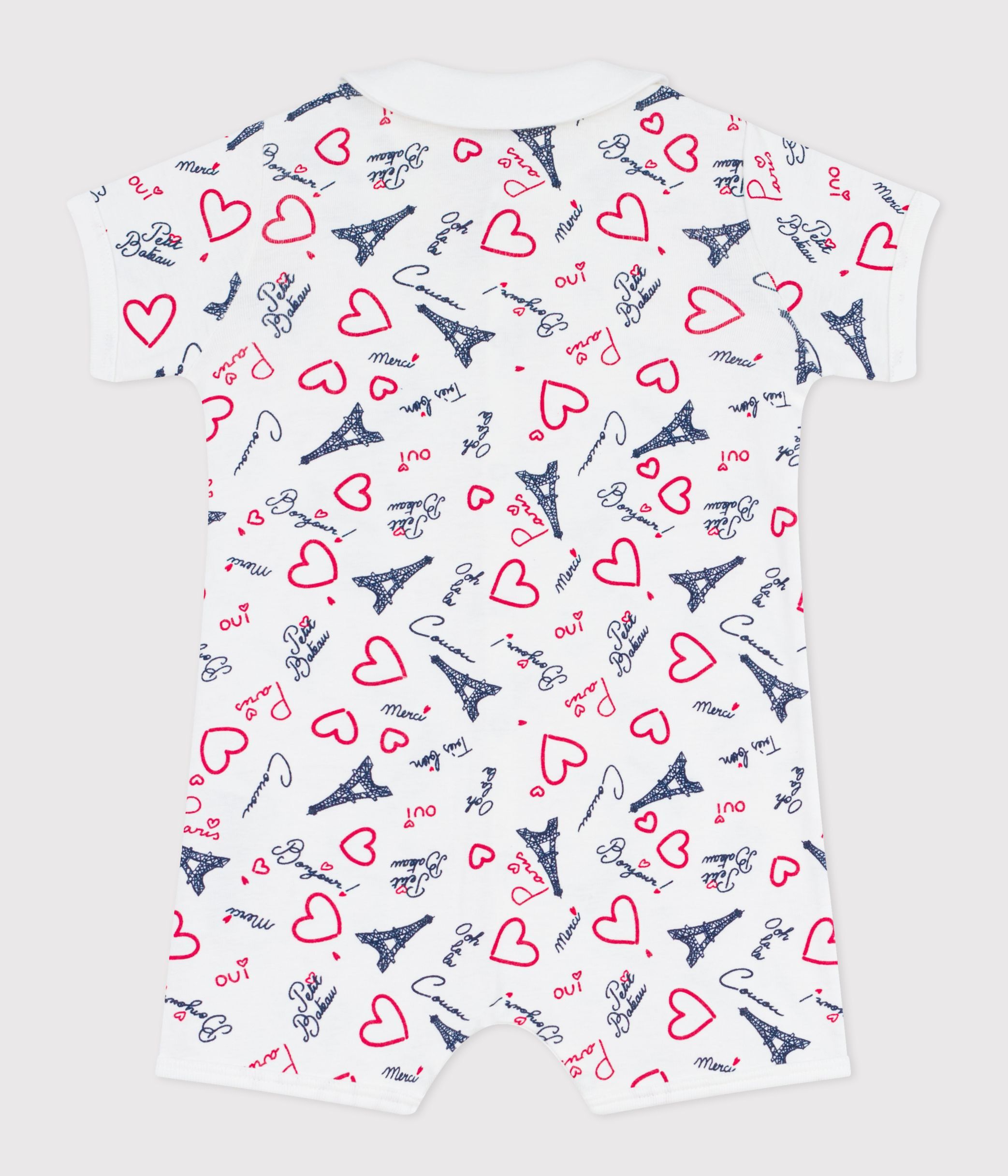 Babies' Paris print cotton playsuit with a collar