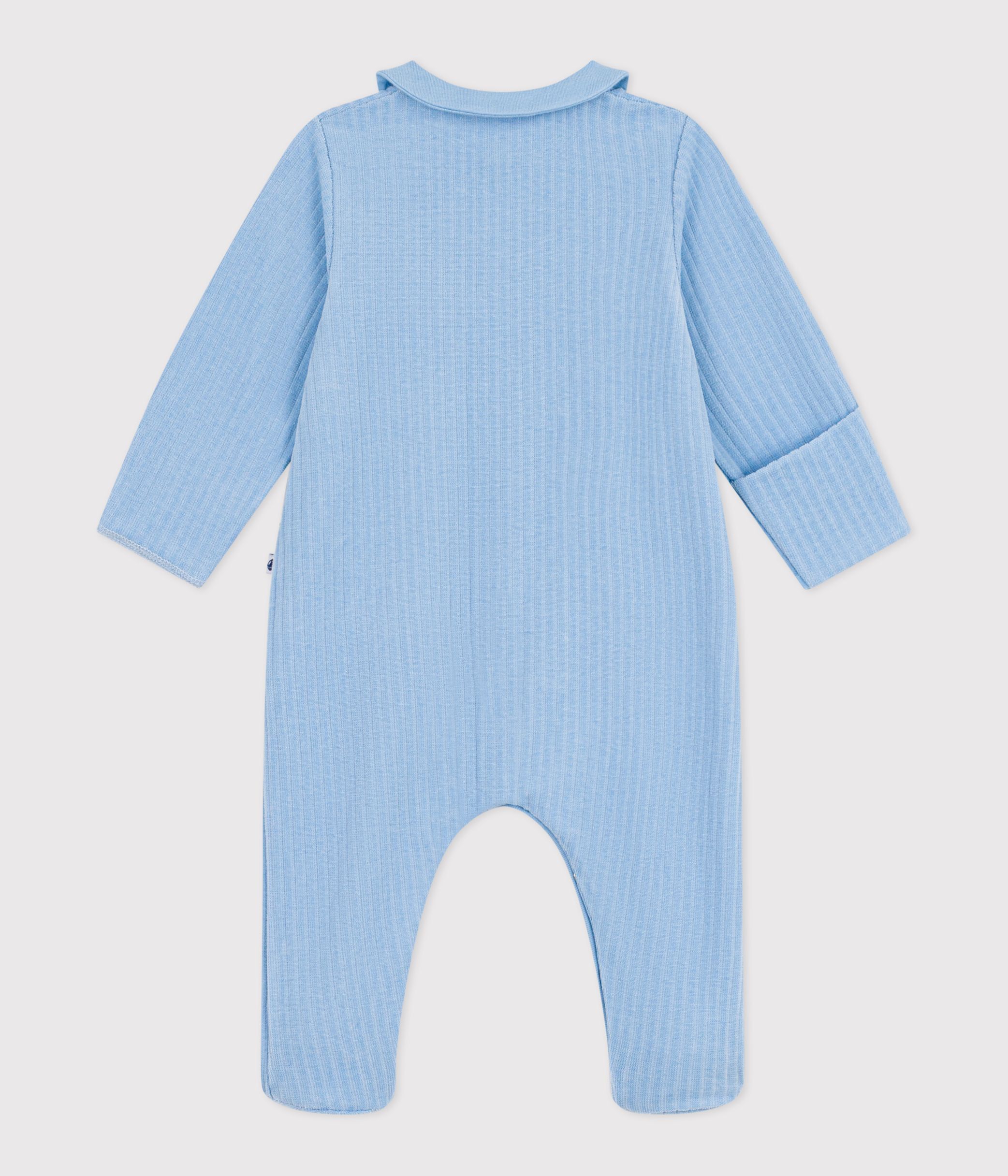 - This stylish pyjama suit with embroidery on the chest, a polo collar and built-in mittens is ideal for a newborn baby's first few months.