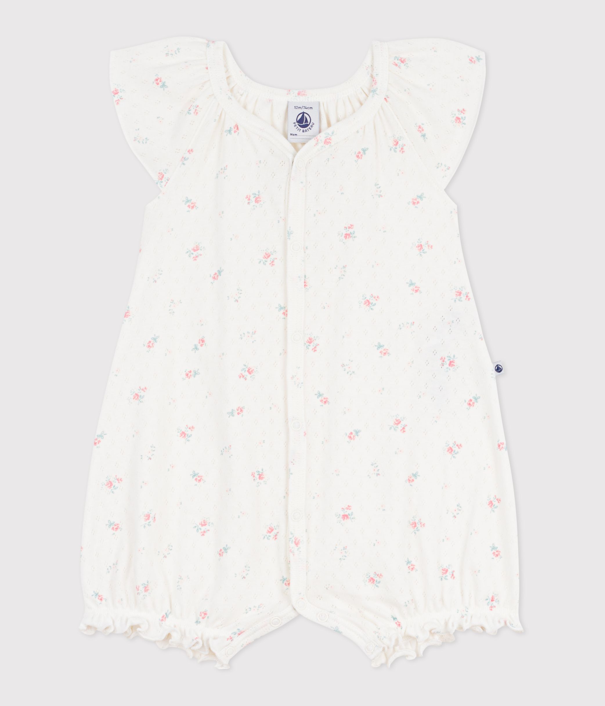 - This short jumpsuit has poppers on the front and between the legs, which is handy when you're getting your baby dressed.