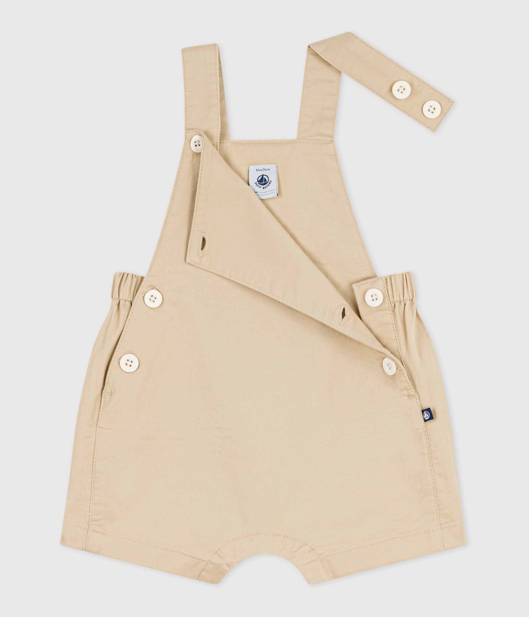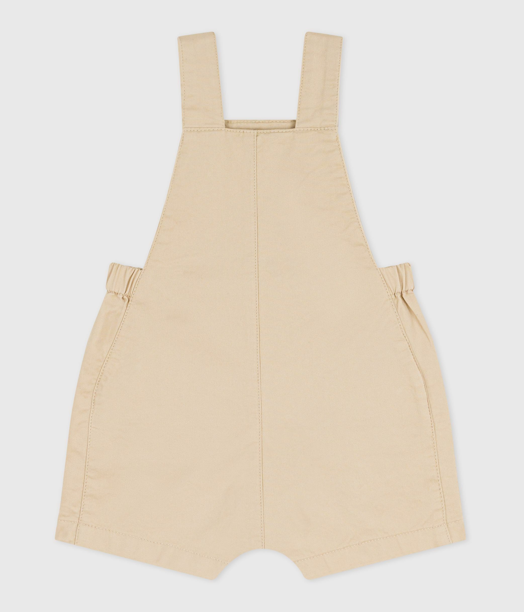 Babies' short-legged plain cotton twill dungarees