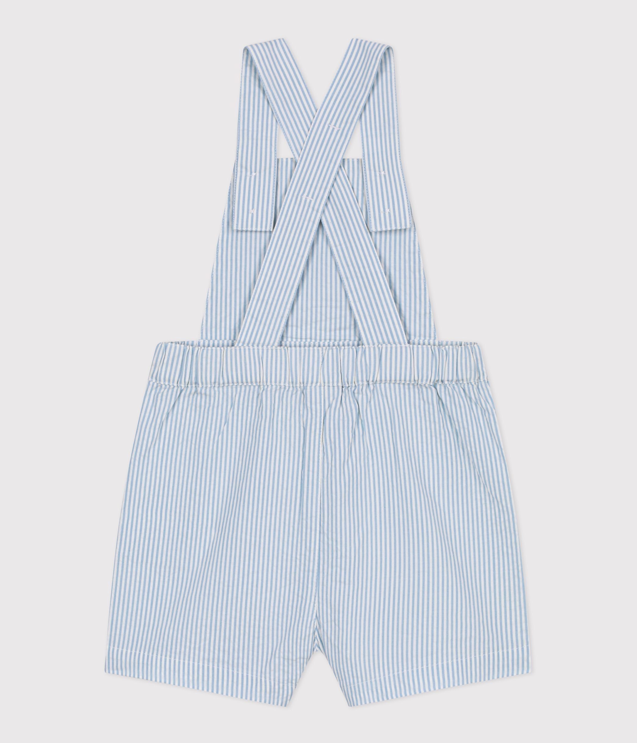 Boys' dungarees in seersucker, a fine, light, supple fabric with a slightly embossed look.