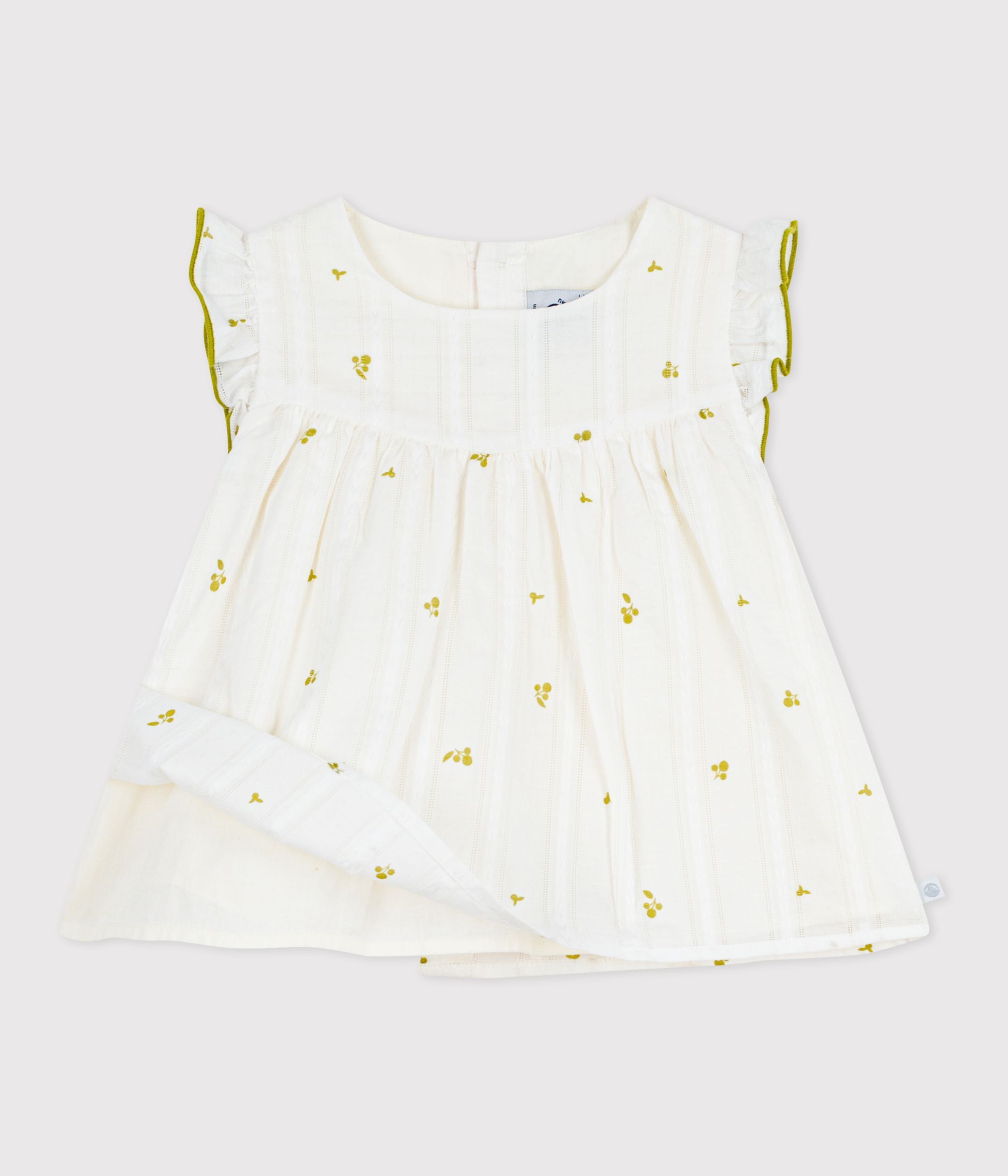 Girls' sleeveless blouse in textured poplin, a light, fine, woven fabric with a slightly textured look.