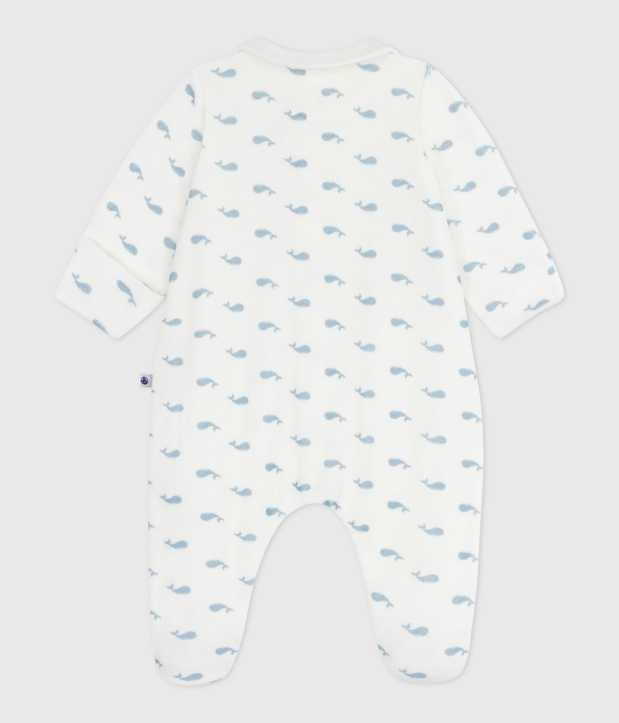 بيجاما للأطفال من المخمل بياقة أنيقة وطبعة حوت