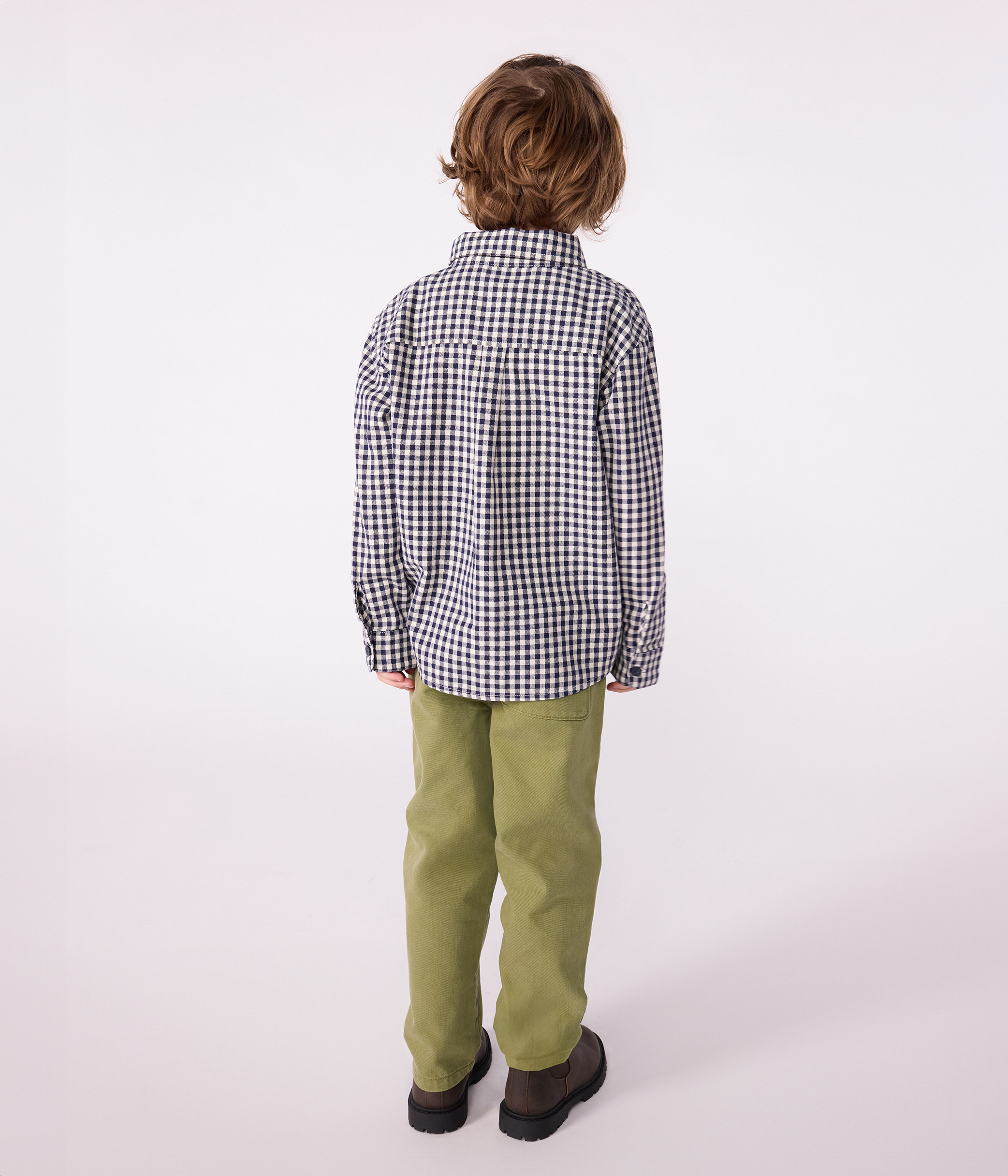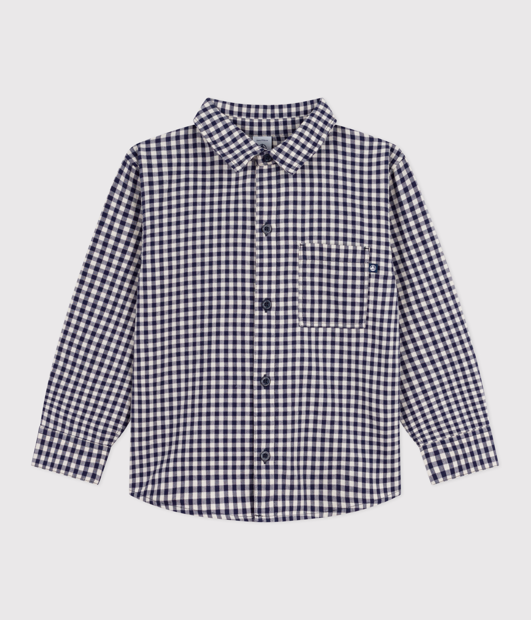 قميص للأولاد من البوبلين بنقشة مربعات، وهو قماش ممتاز، ناعم وخفيف الوزن.
