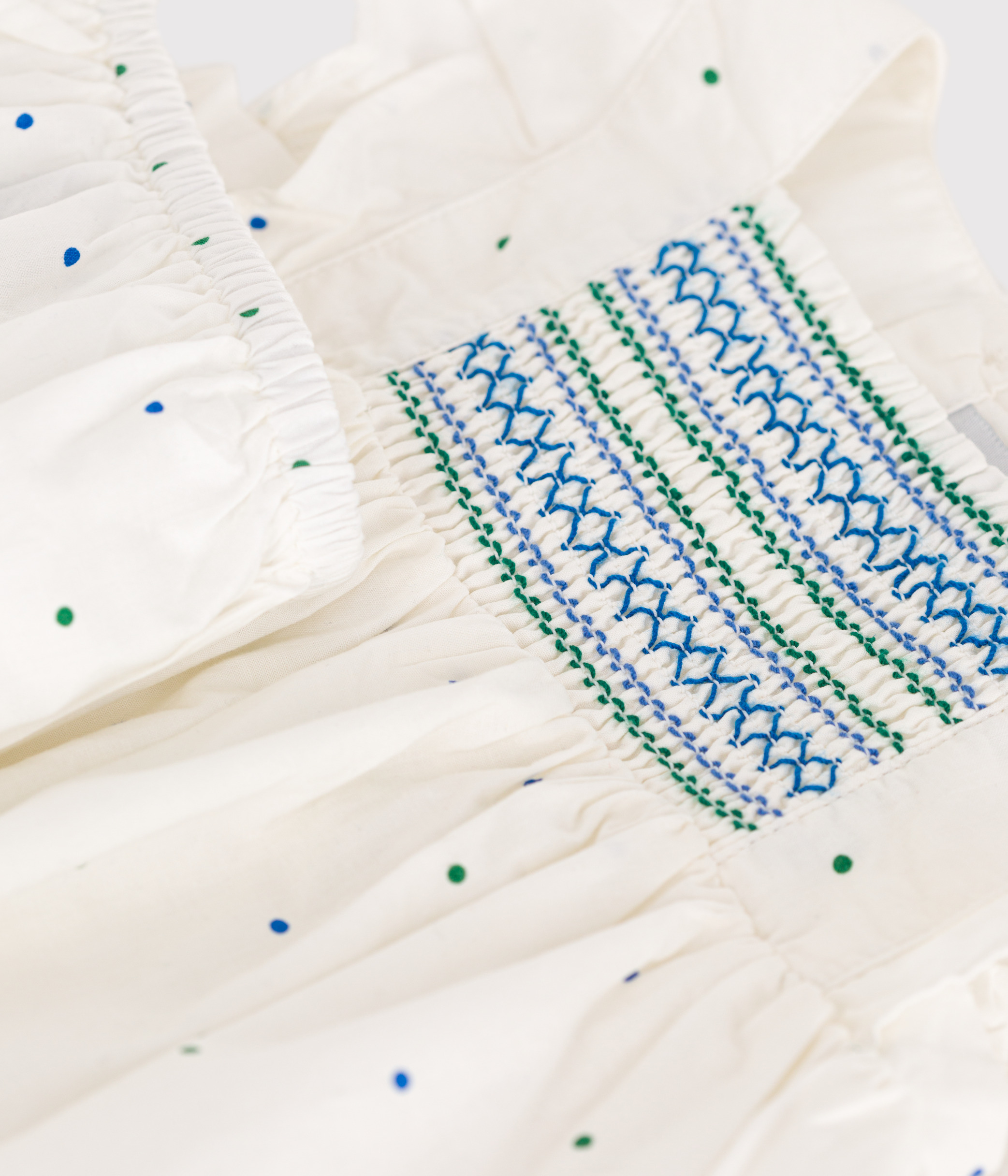 - It's perfect with its ruffled shoulders and smocked details at the neckline in the same colours as the print!