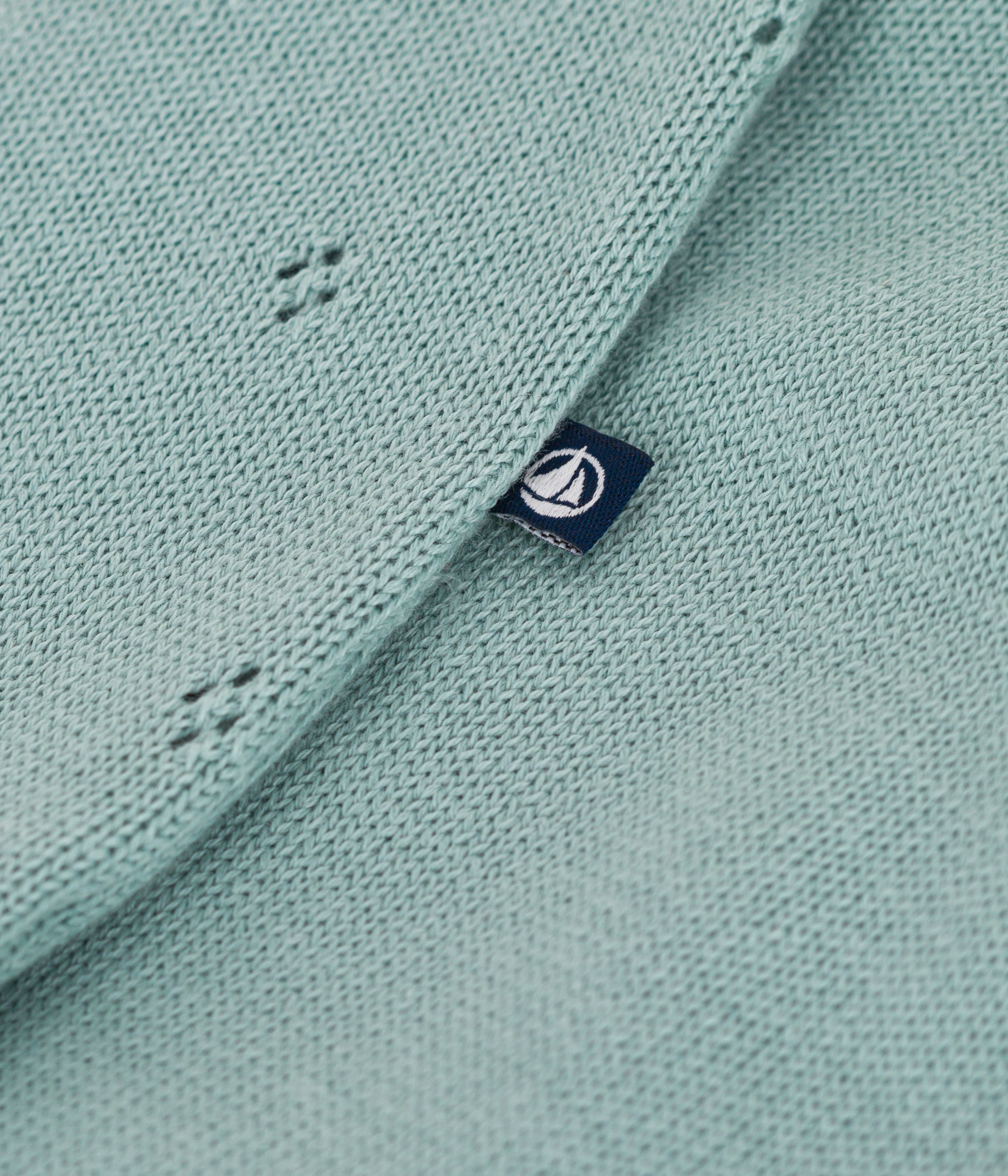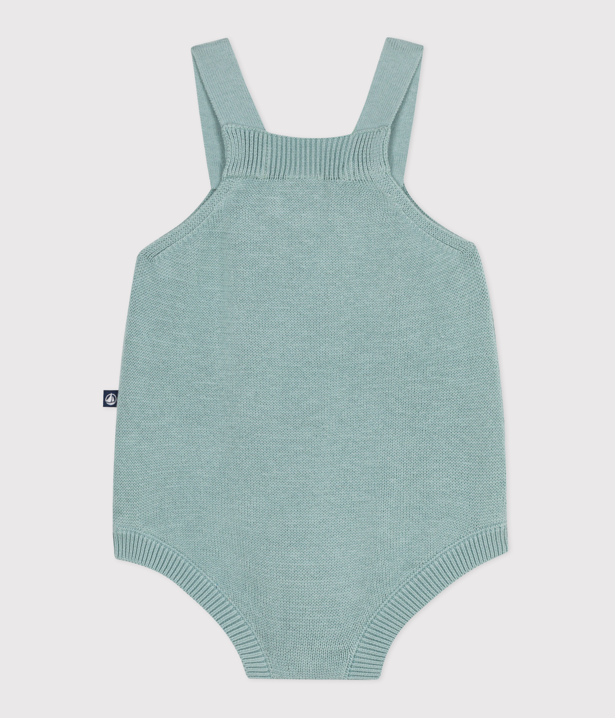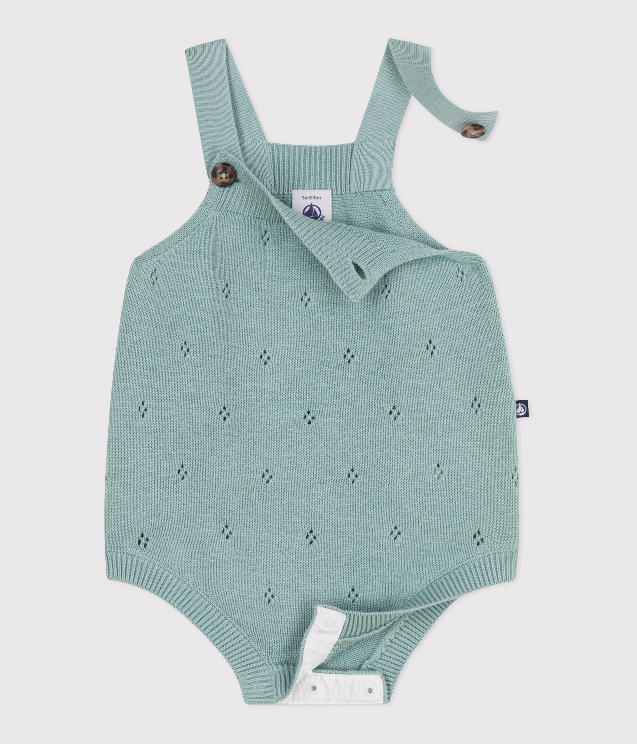 Unisex short cotton playsuit knitted in an openwork stitch: this will be a sure-fire favourite!