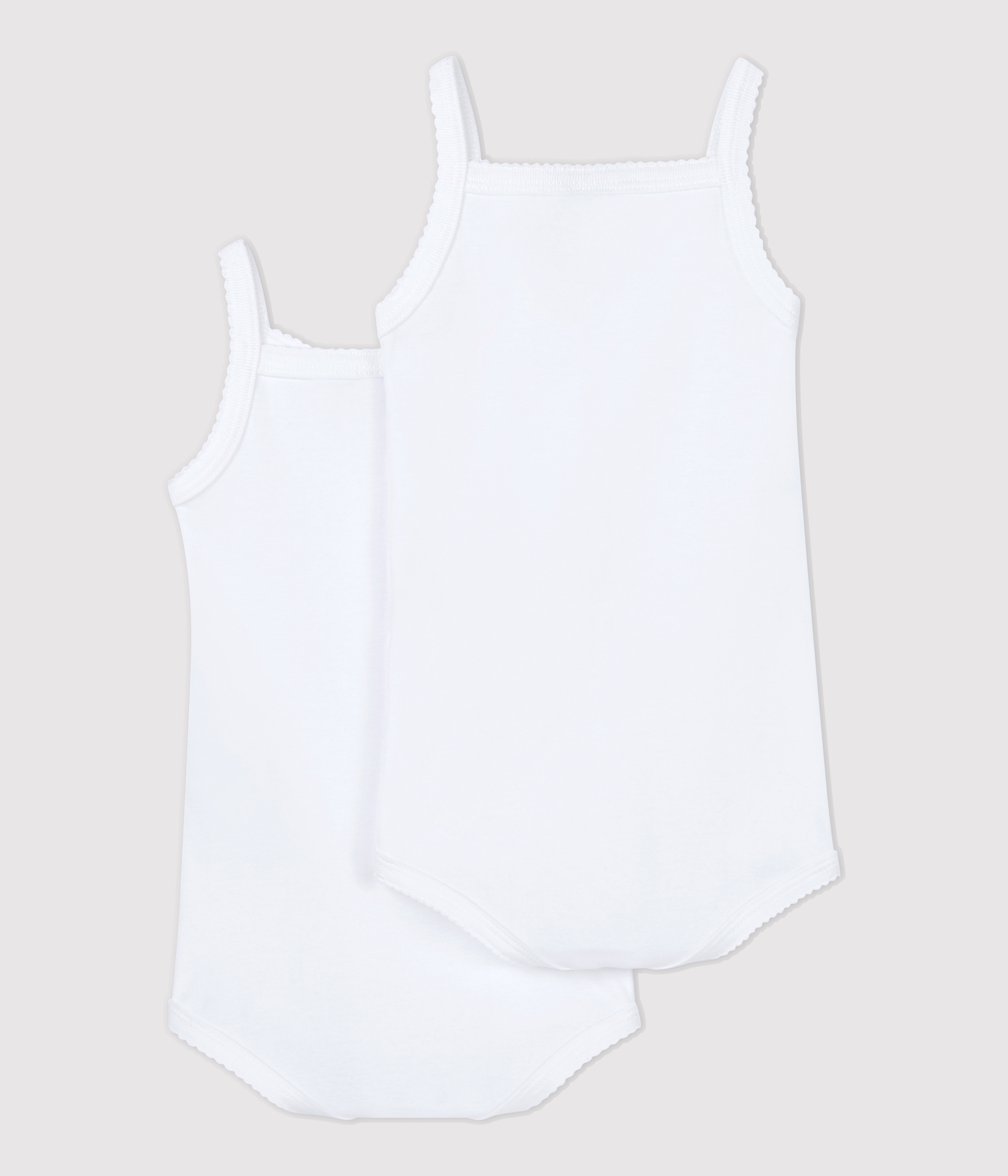 • 2 bodysuits with straps in Petit Bateau's iconic rib knit.