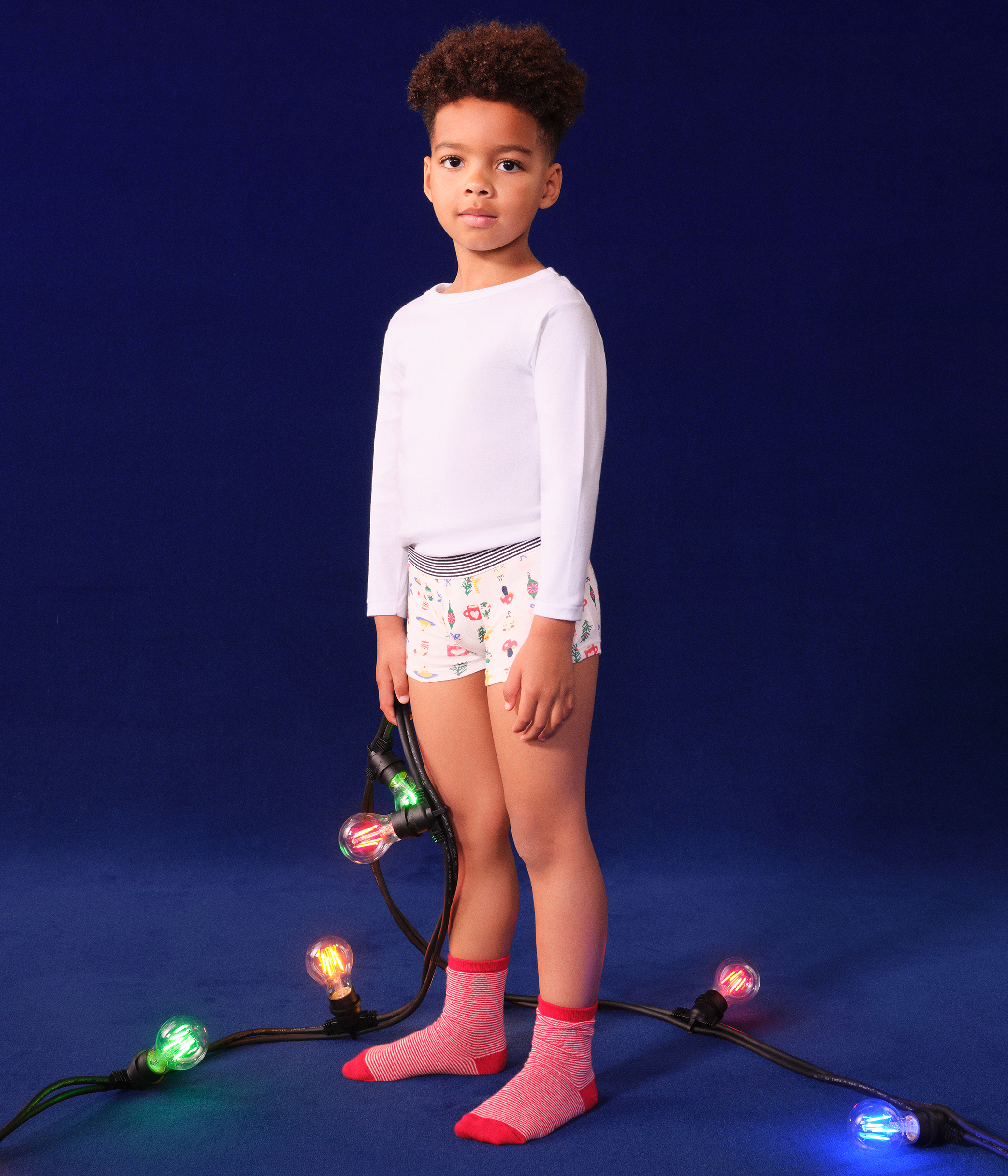 - This Pack Contains One Pair Of Boxers Printed With Christmas Motifs, One Pair Of Boxers In Plain 1X1 Rib Knit With A Printed Motif And One Pair Of Boxers In Pinstriped 1X1 Rib.