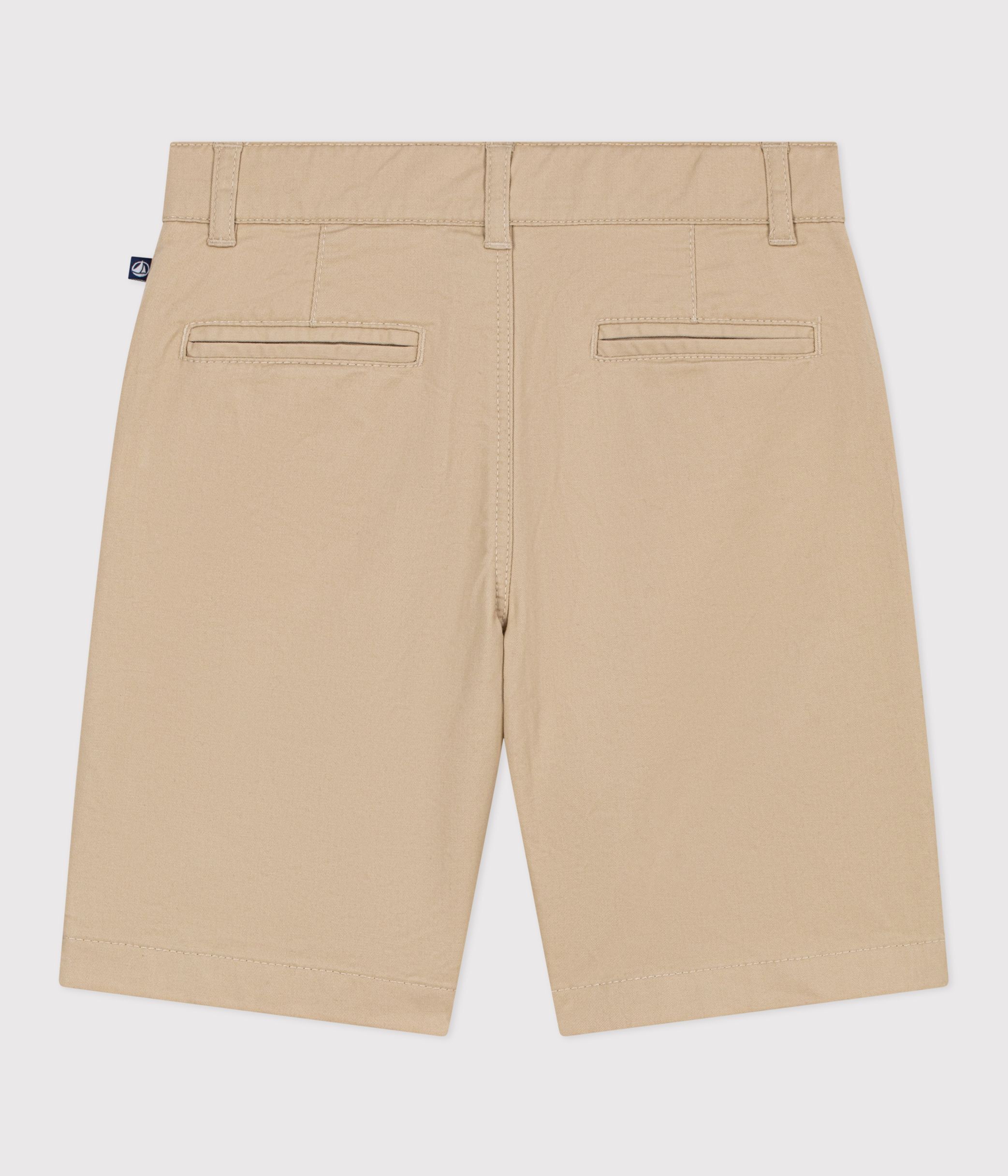 - Boys' Bermuda shorts in twill, a comfortable fabric that fits and holds its shape well.