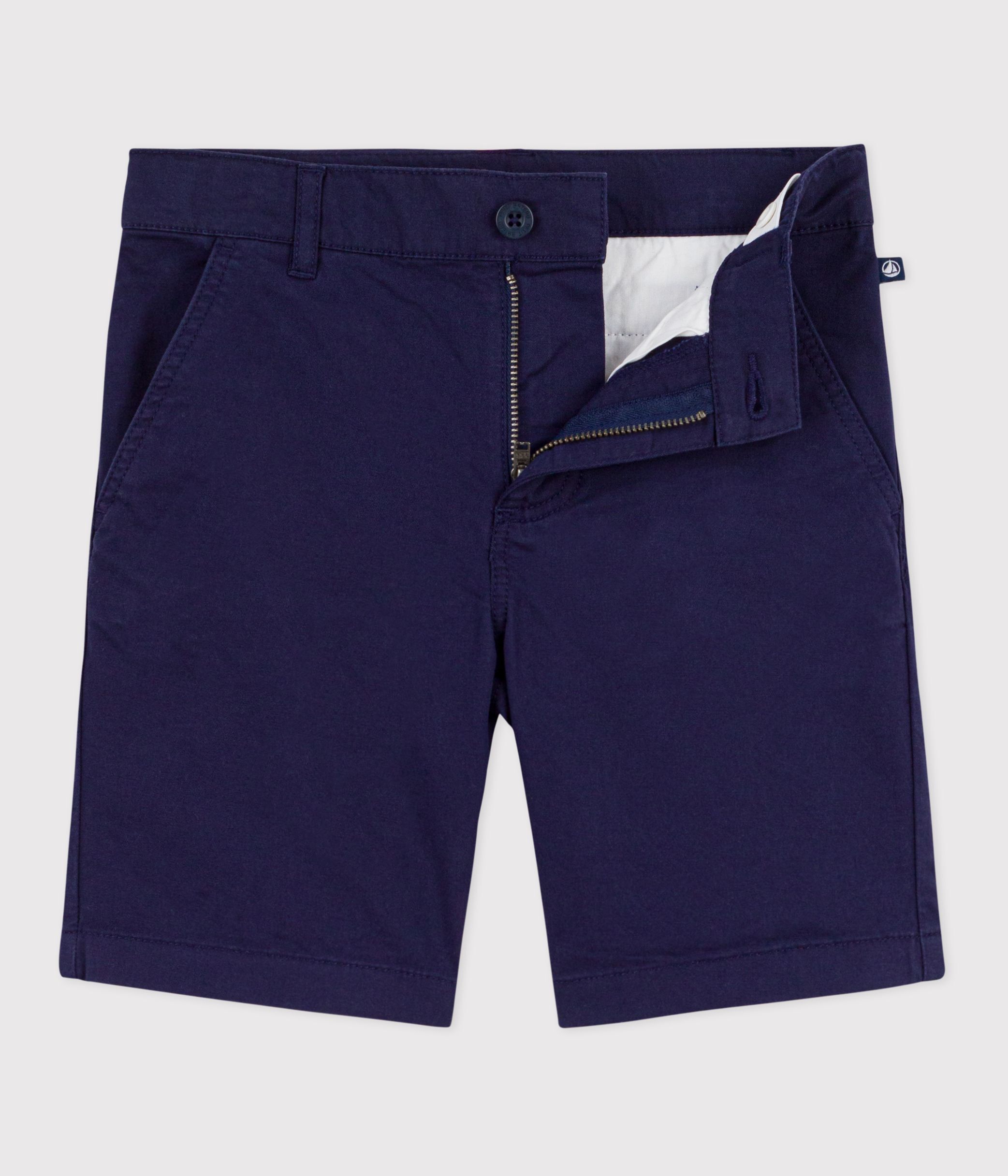 - Boys' Bermuda shorts in twill, a comfortable fabric that fits and holds its shape well.