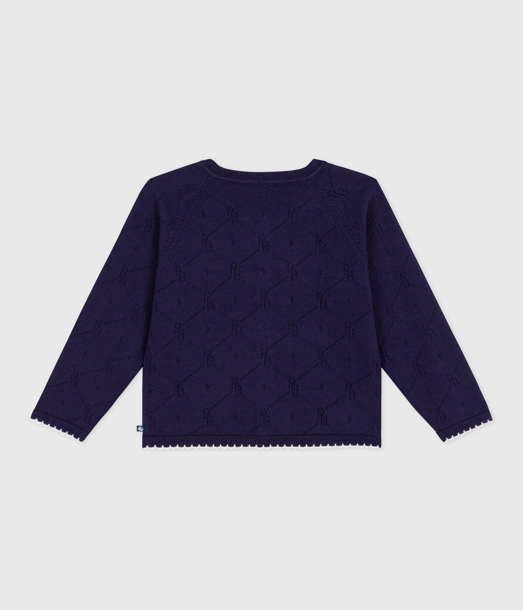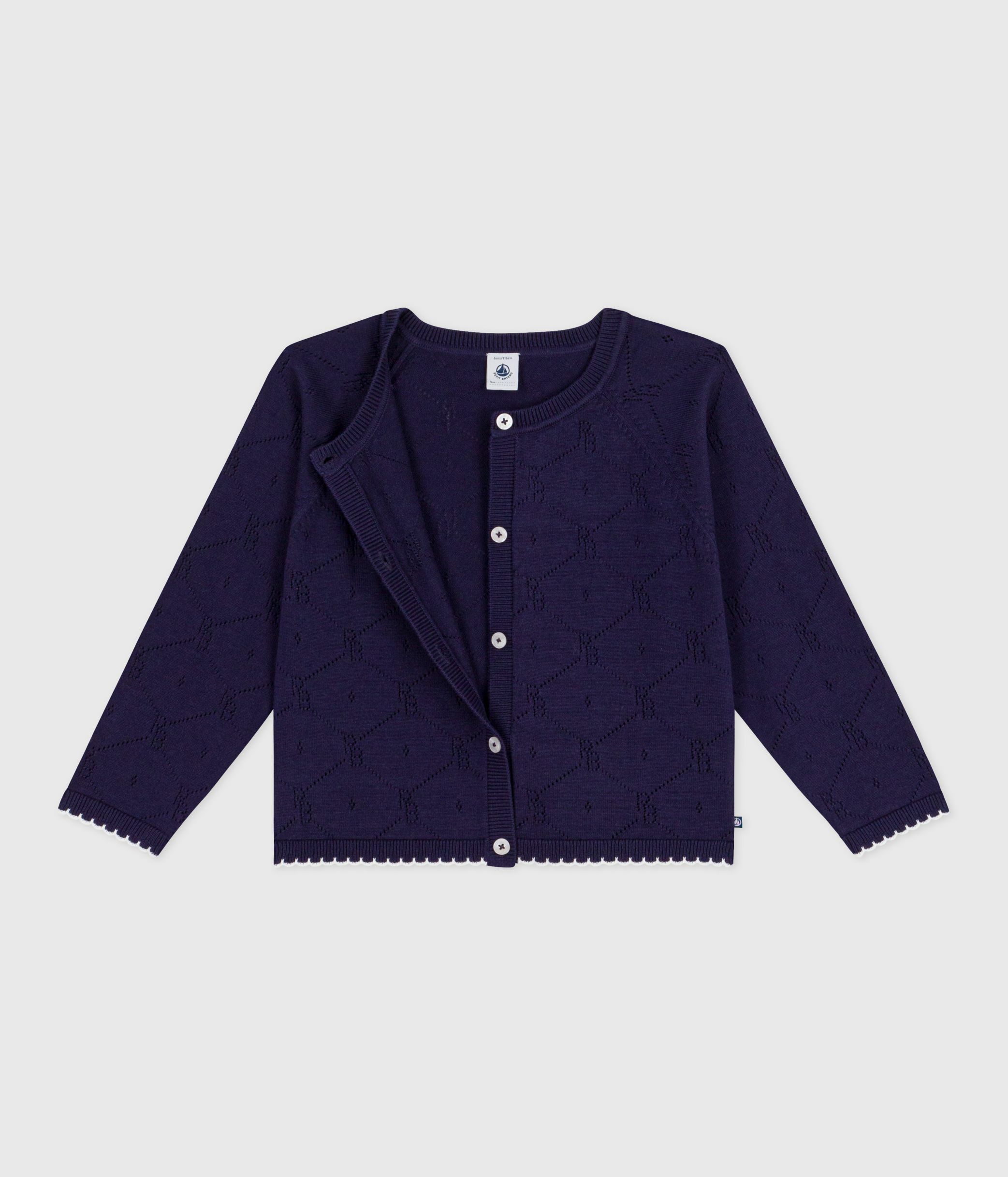 - Boys' 100% cotton knitted cardigan with an openwork stitch motif.