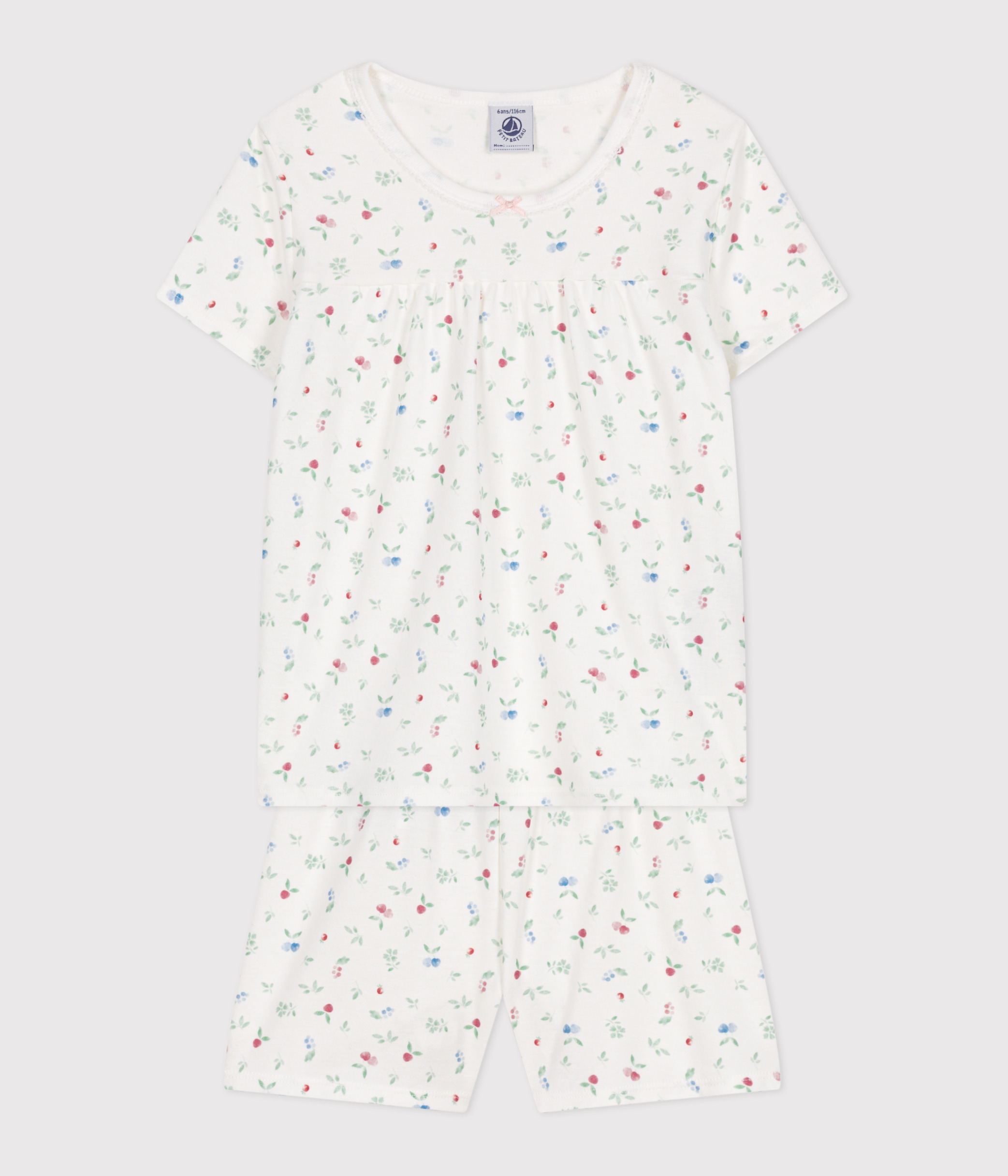 - These pyjamas feature a soft, feminine print with a little fruit motif. Perfect for the summer season!
