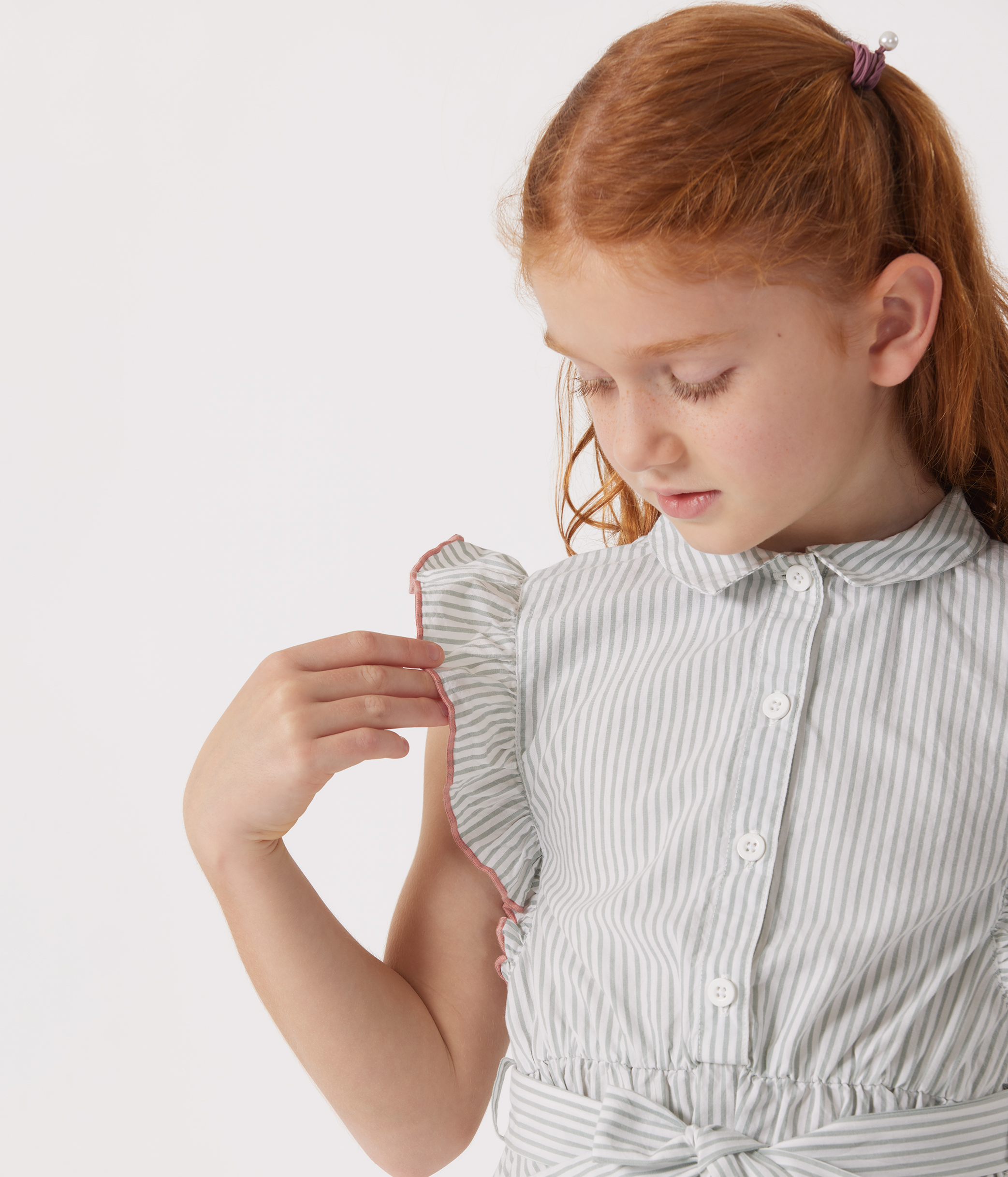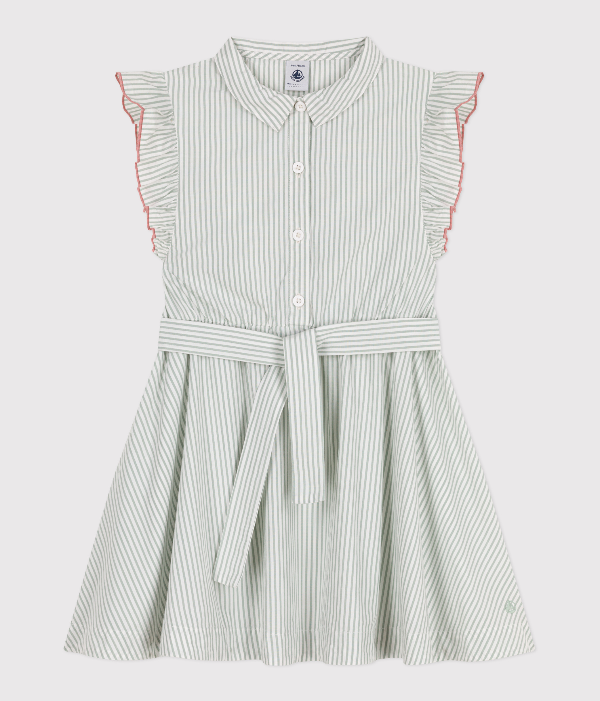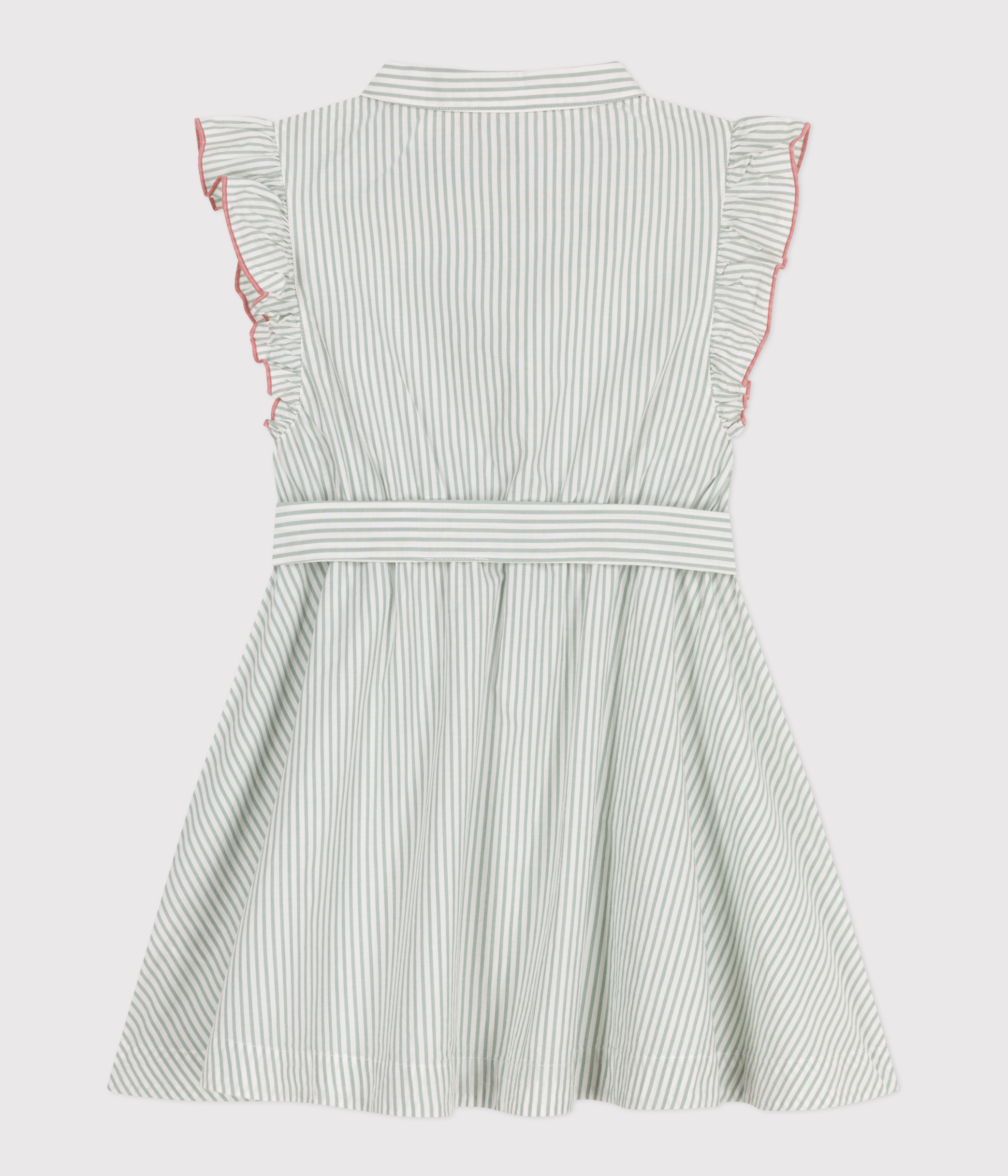 Girl's sleeveless dress in stripy poplin, a fine, lightweight fabric.