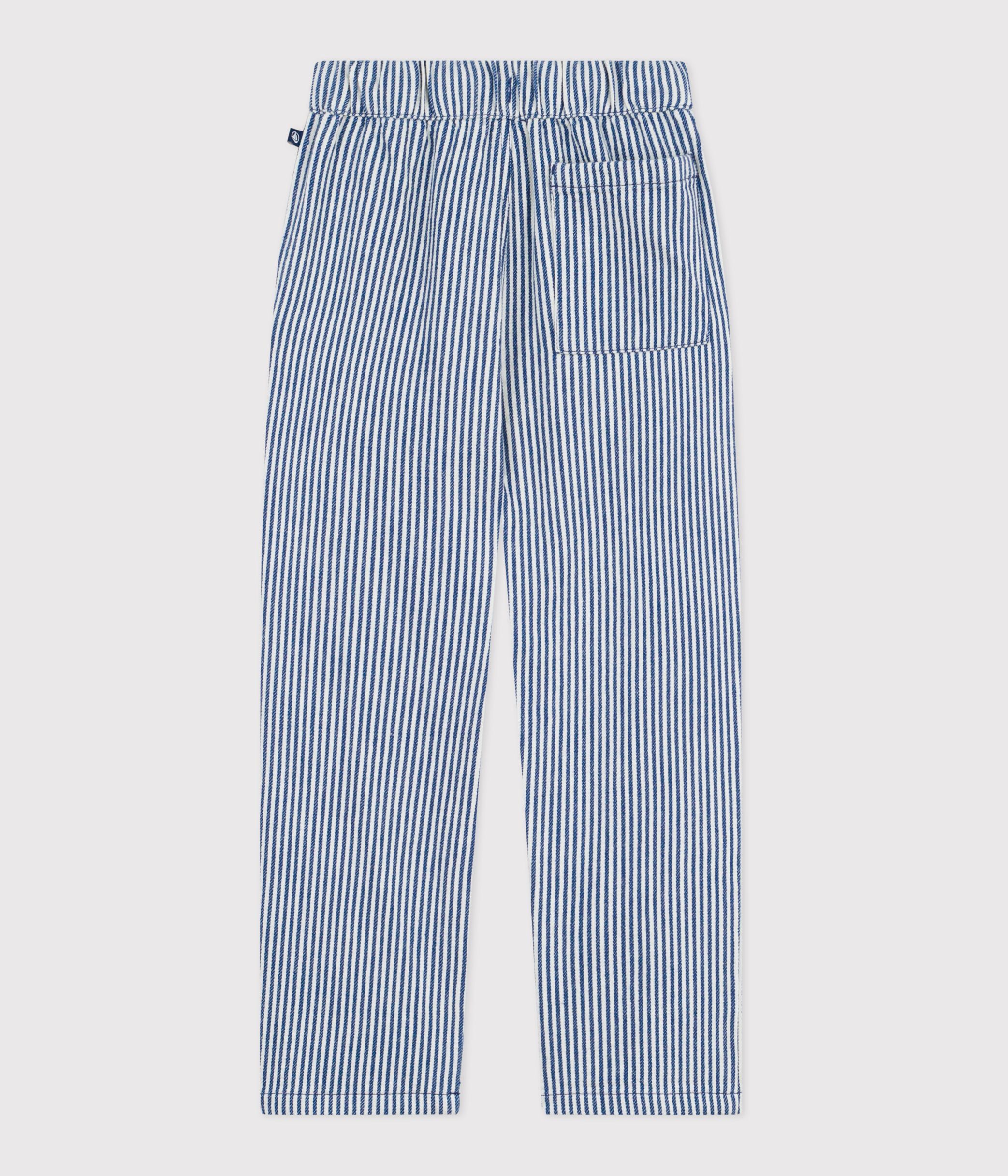 Boys' trousers in light, fine, supple woven fabric with a slightly embossed look.