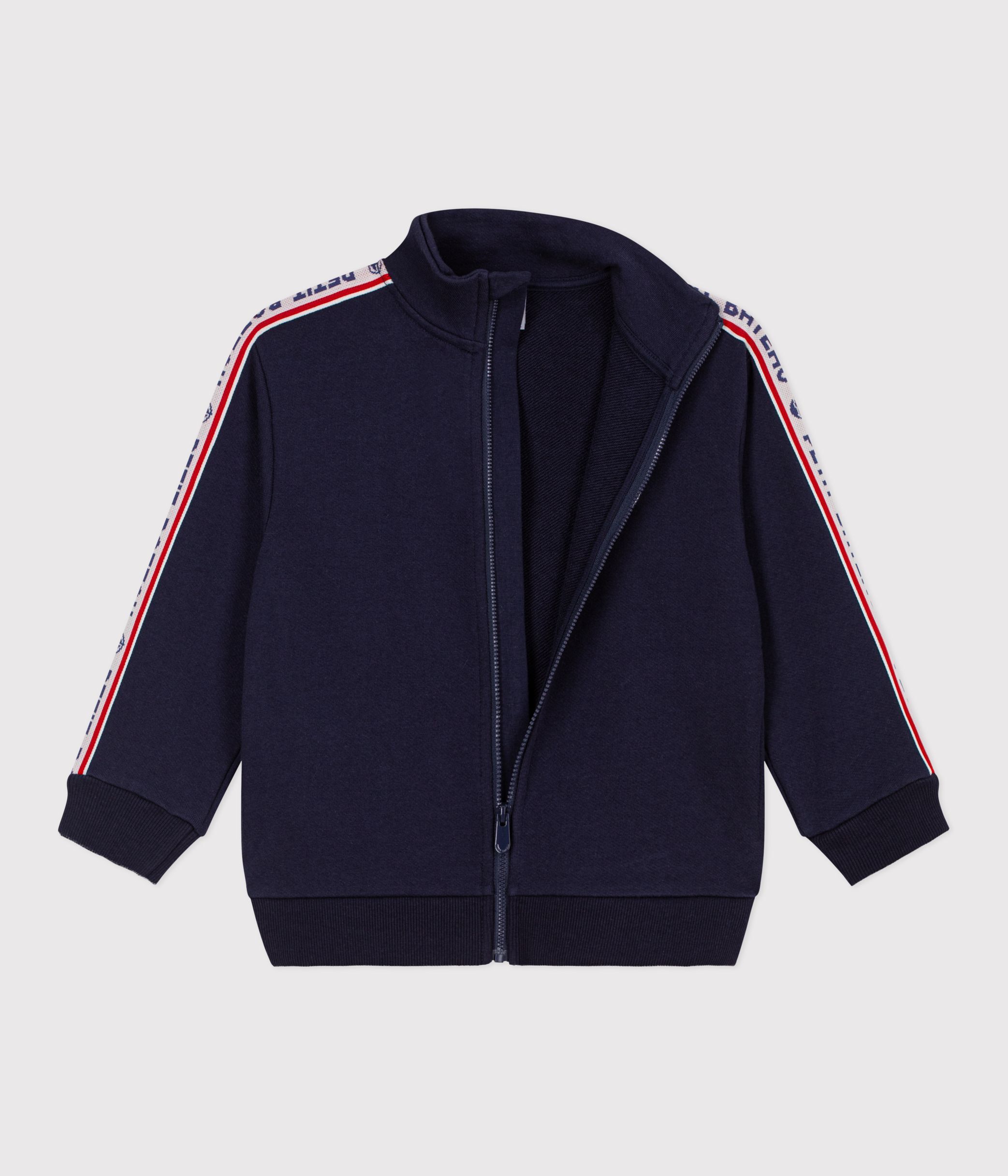 Boys' zip-up sweatshirt with a high neck, made from soft, comfortable fleece.