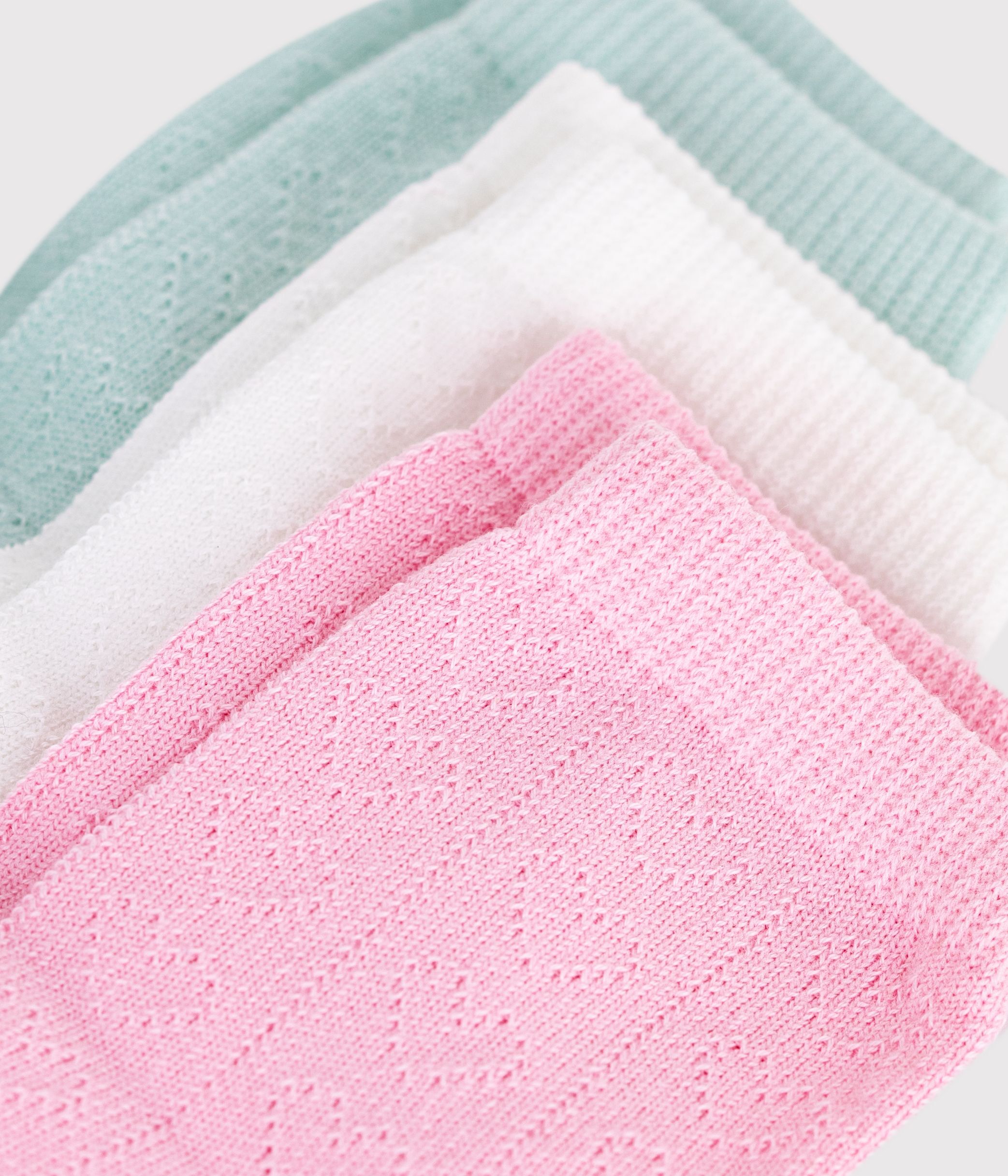 Pack of 3 pairs of babies' heart-pattern openwork cotton socks