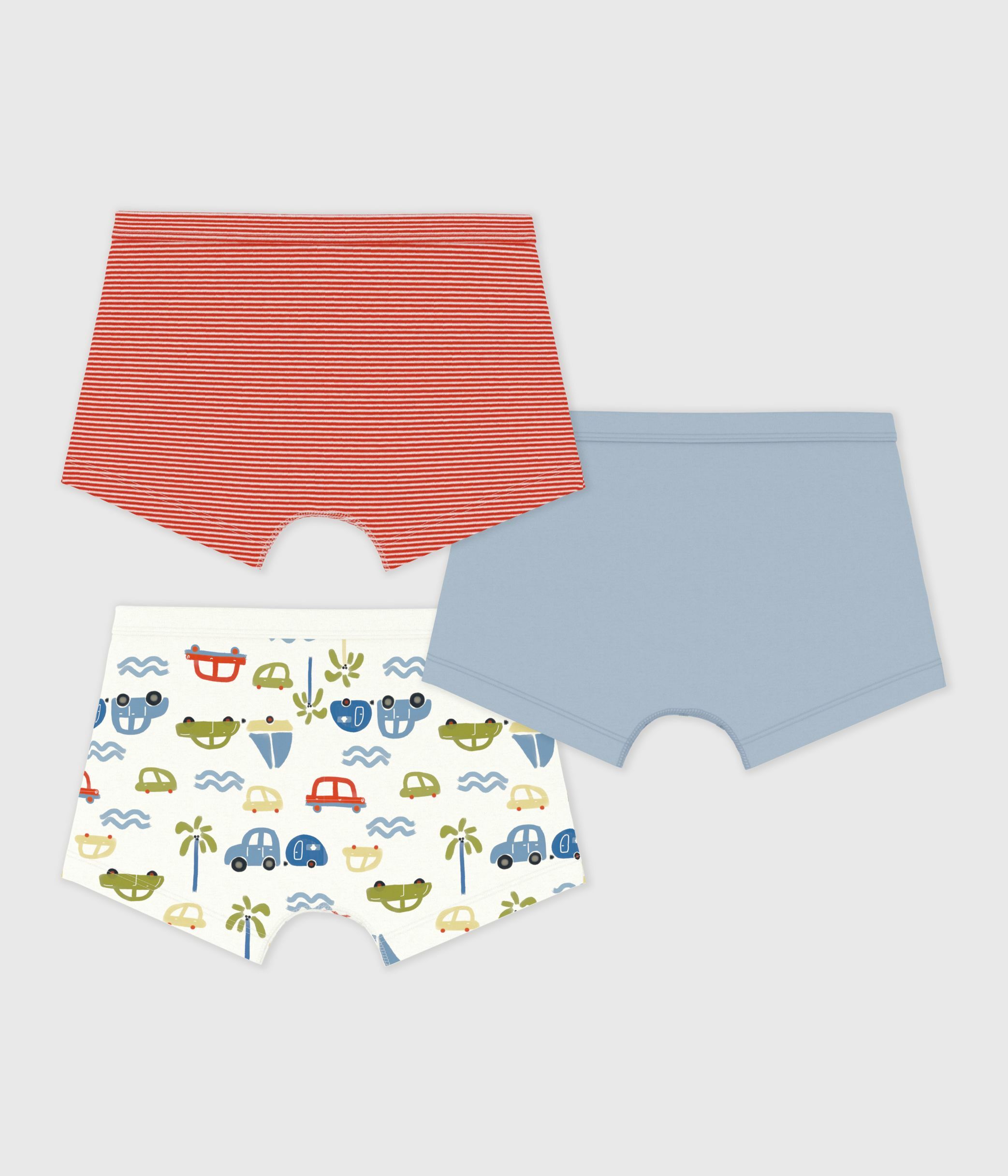 Pack of 3 pairs of boys' boxers in 1×1 rib, a comfy, stretchy fabric.