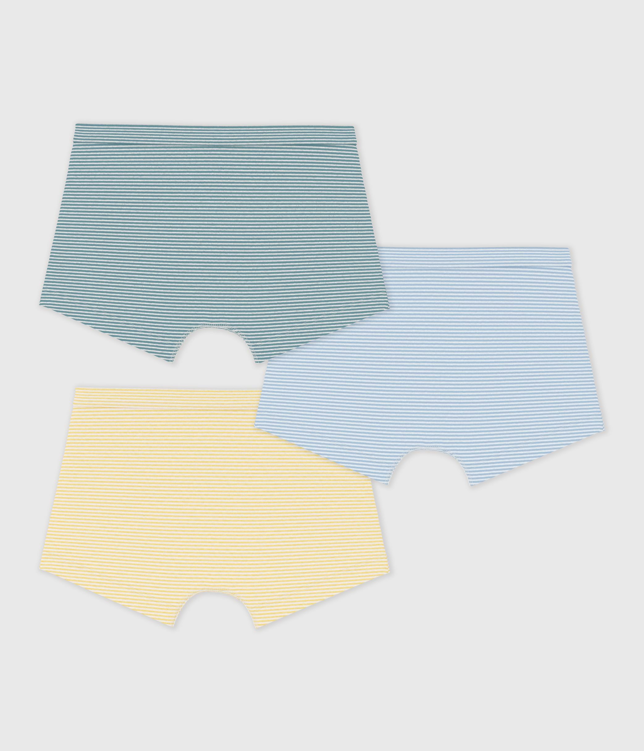 Pack of three pairs of boys' boxers in pinstriped 1x1 rib knit, a stretchy, comfortable fabric.
