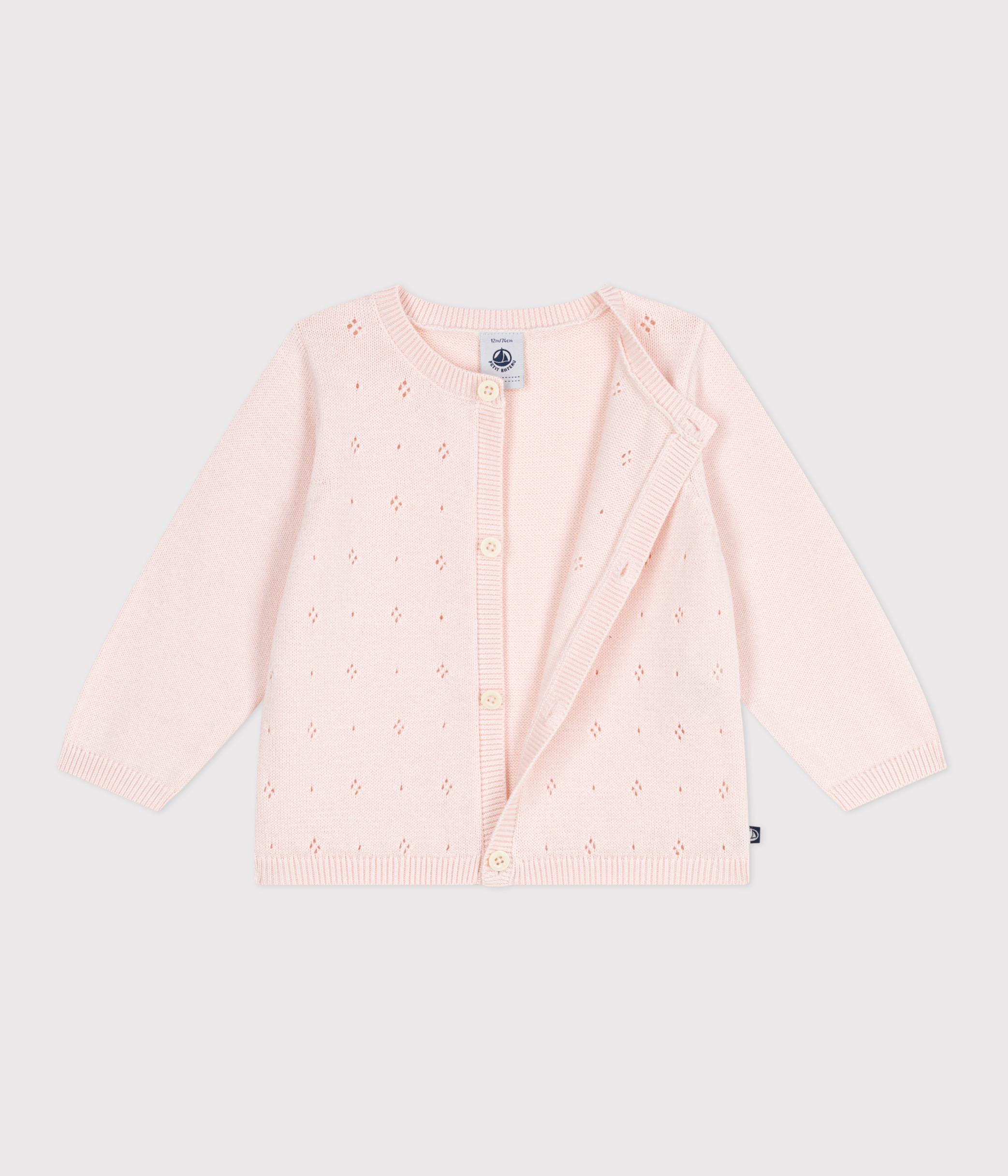 Girl's cotton knit cardigan openwork on the front. The decorative stitch adds a chic touch!