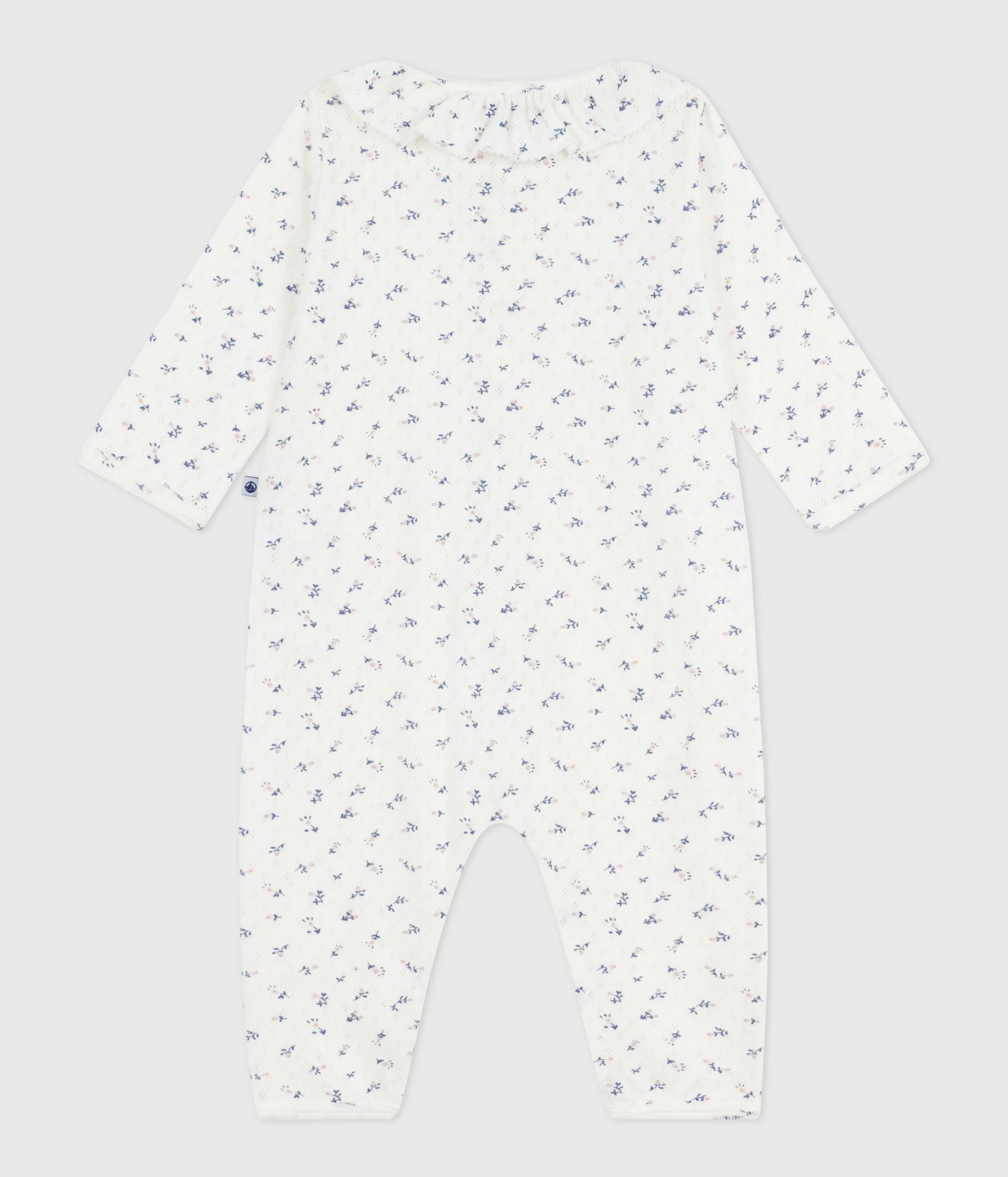 Babies' footless openwork floral-print cotton pyjama suit