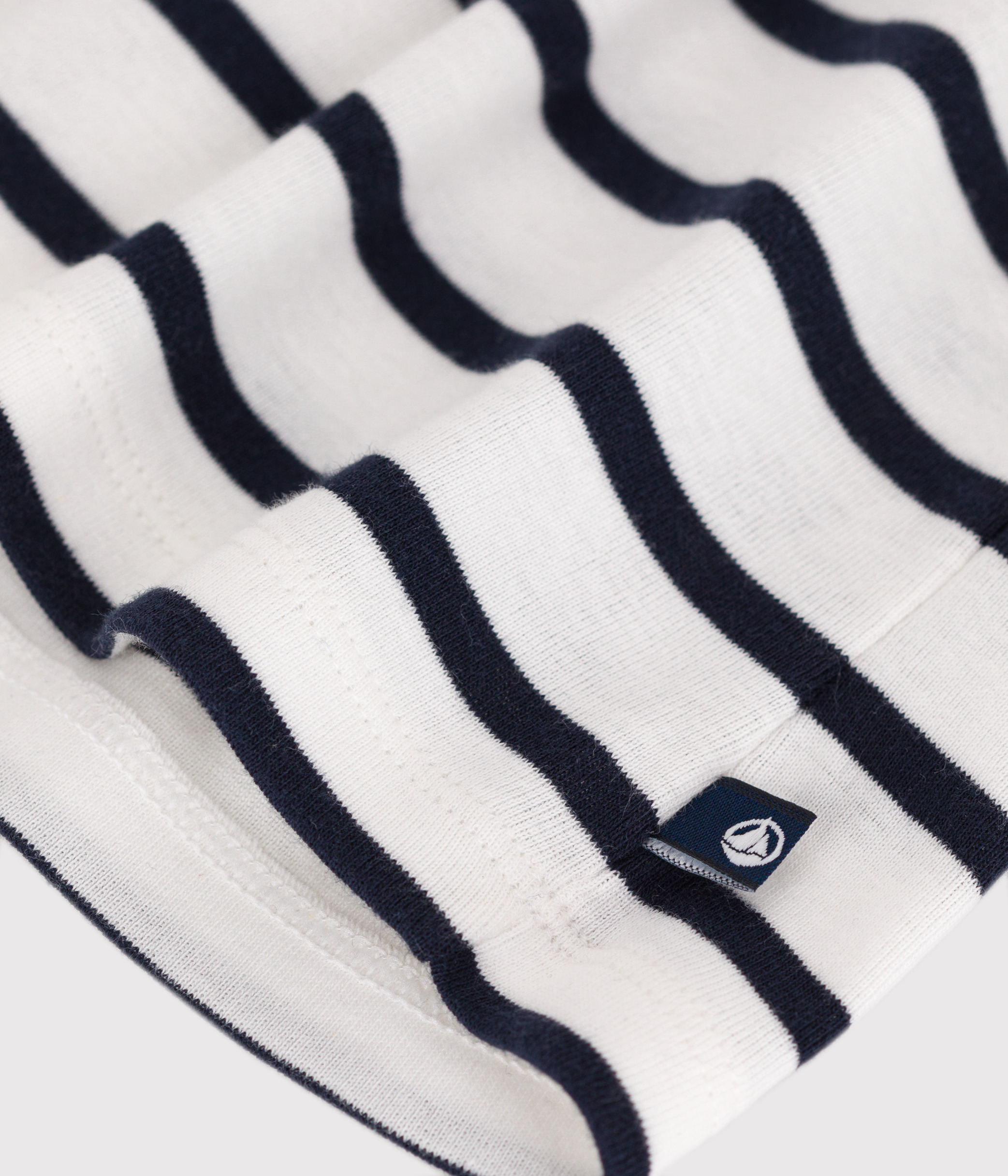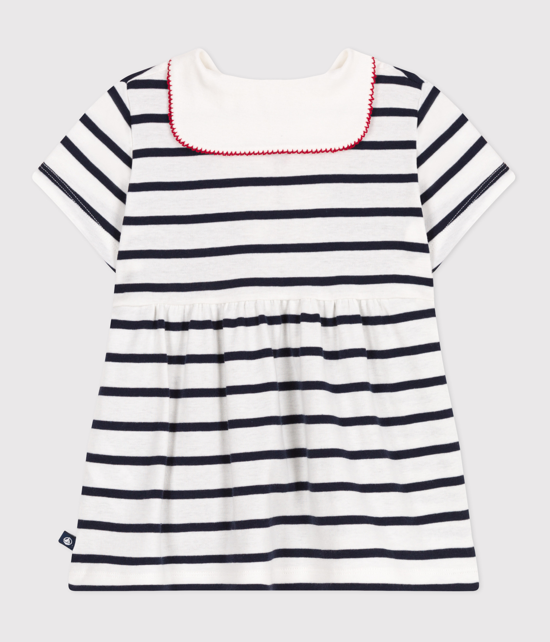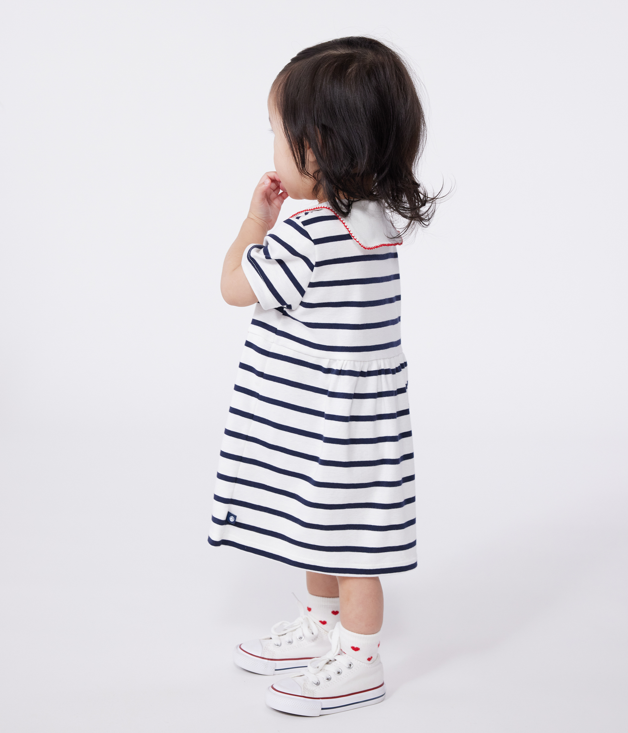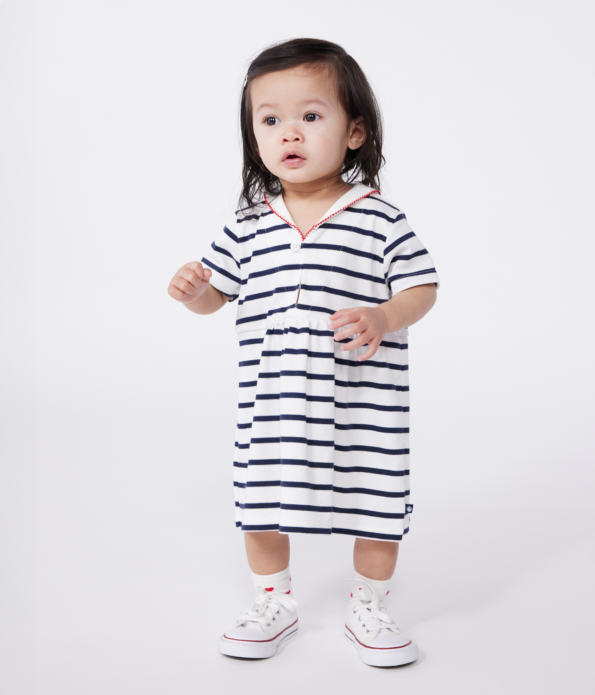 Girls' iconic Breton-stripe dress in 1x1 rib knit, a stretchy, comfortable fabric.