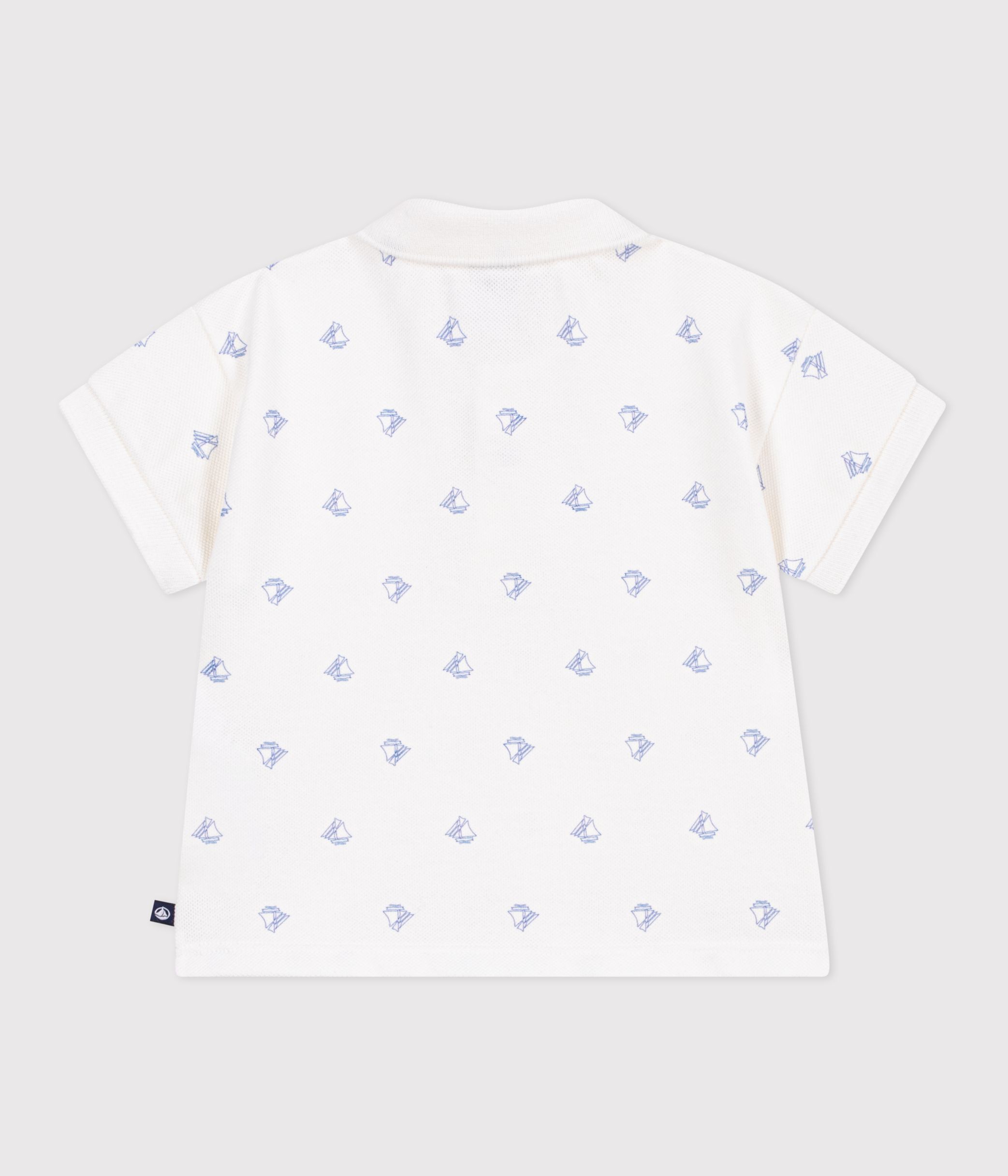 Babies' short-sleeved cotton polo shirt printed with vintage boats