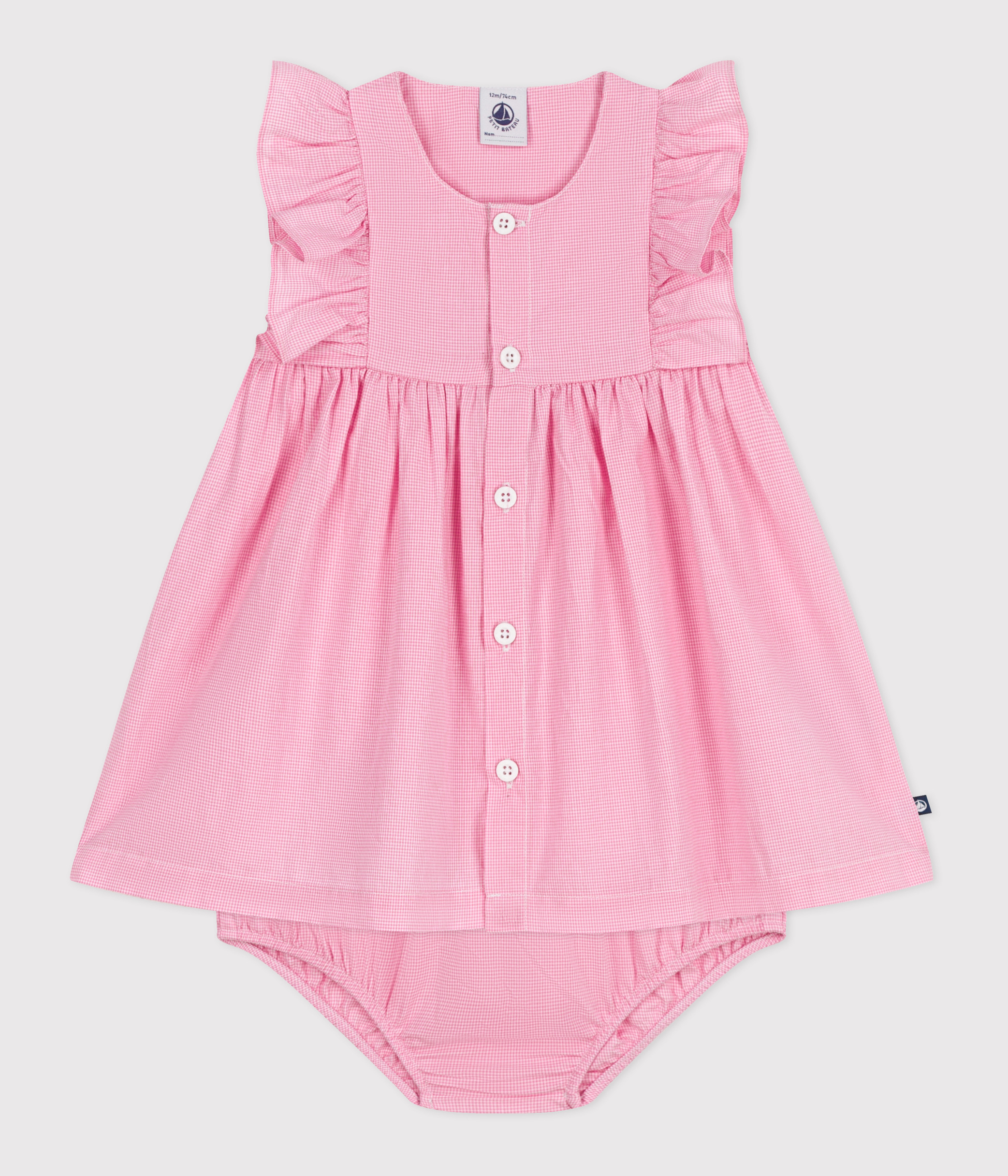 Babies' short-sleeved lightweight cotton gingham print dress and bloomers