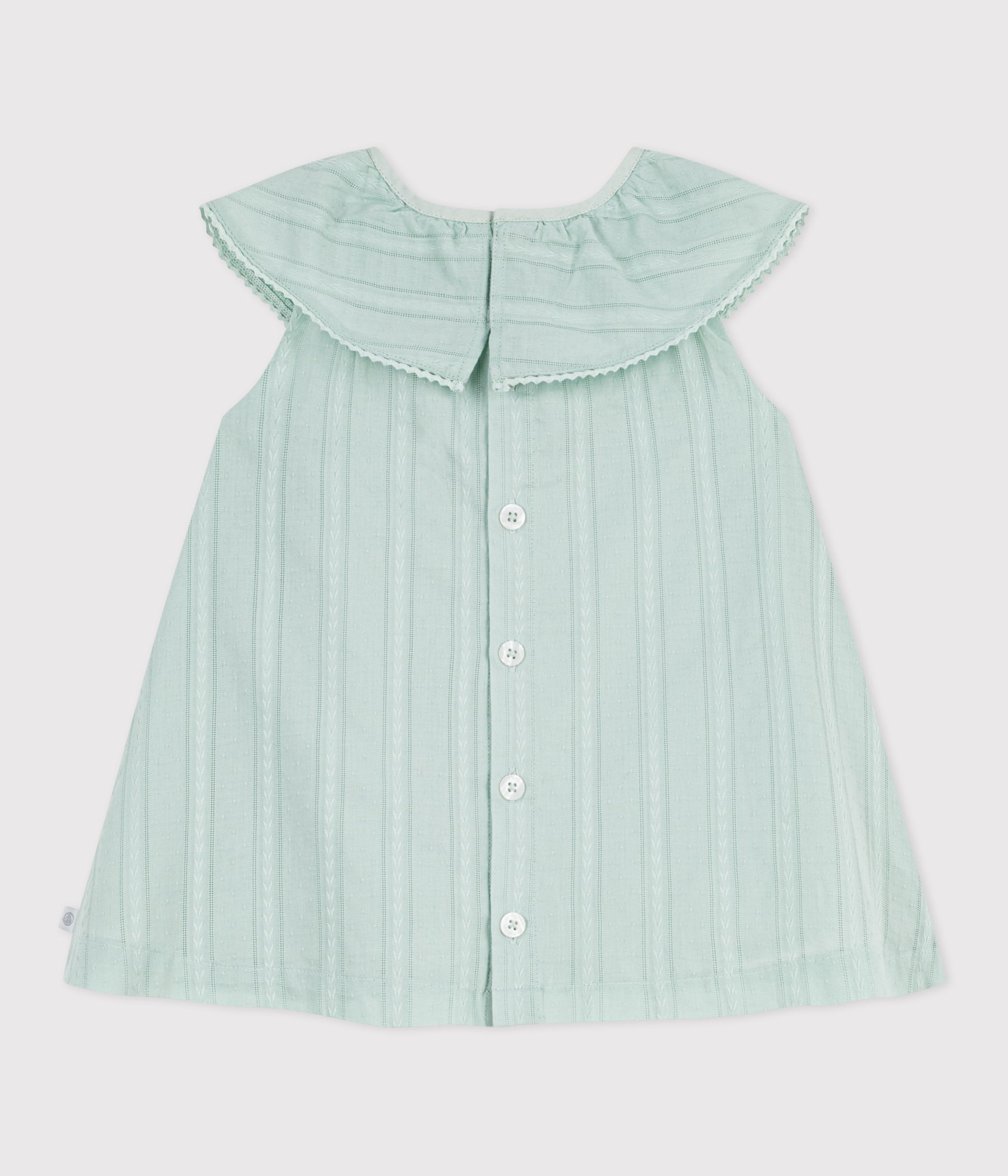 Babies' short-sleeved plain cotton dress with a ruff collar