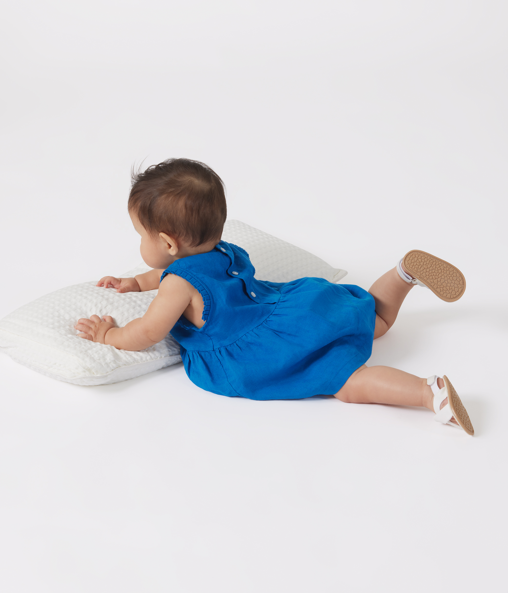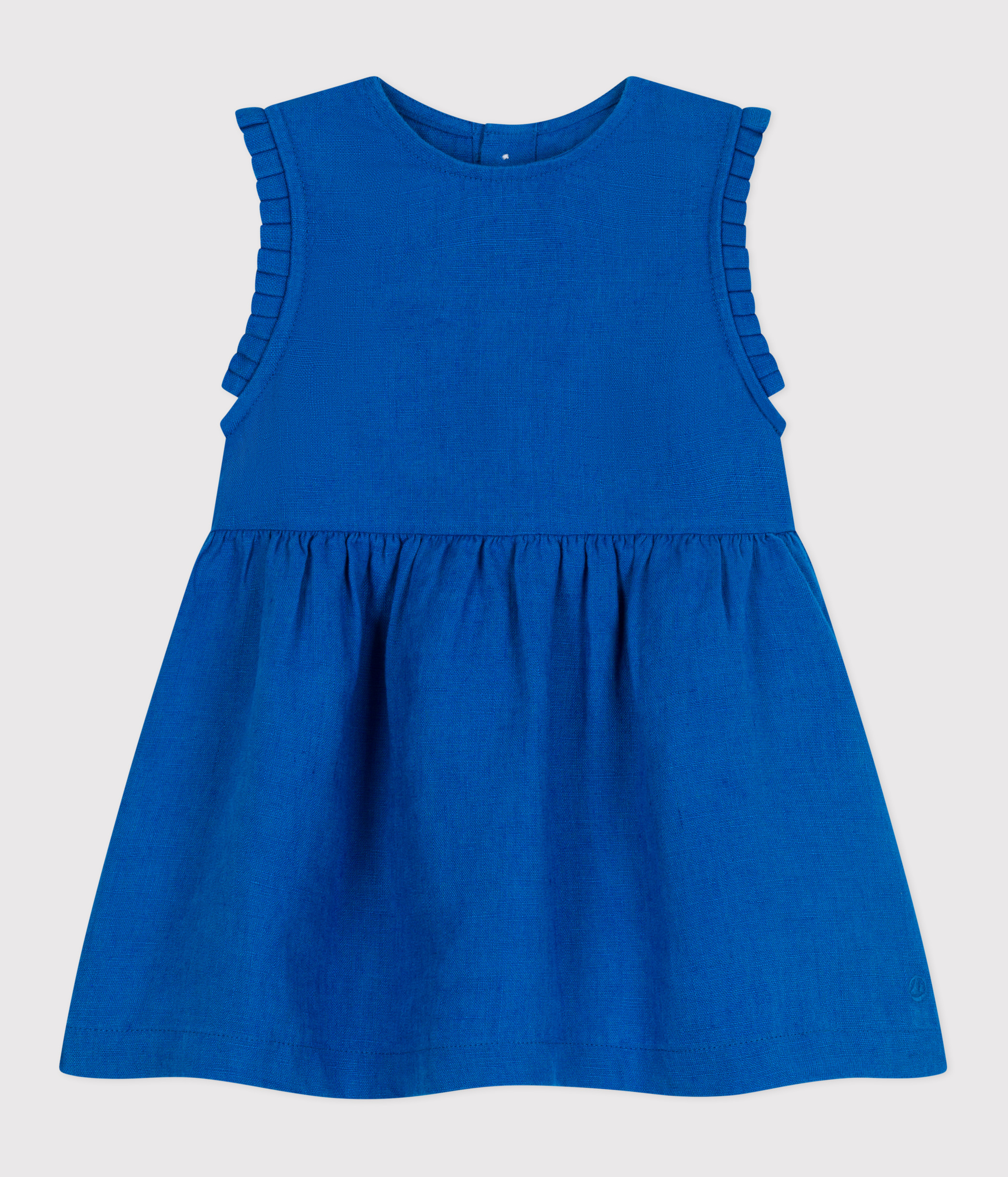Girls' dress in 100% woven linen, an elegant fabric that's perfect for summer.