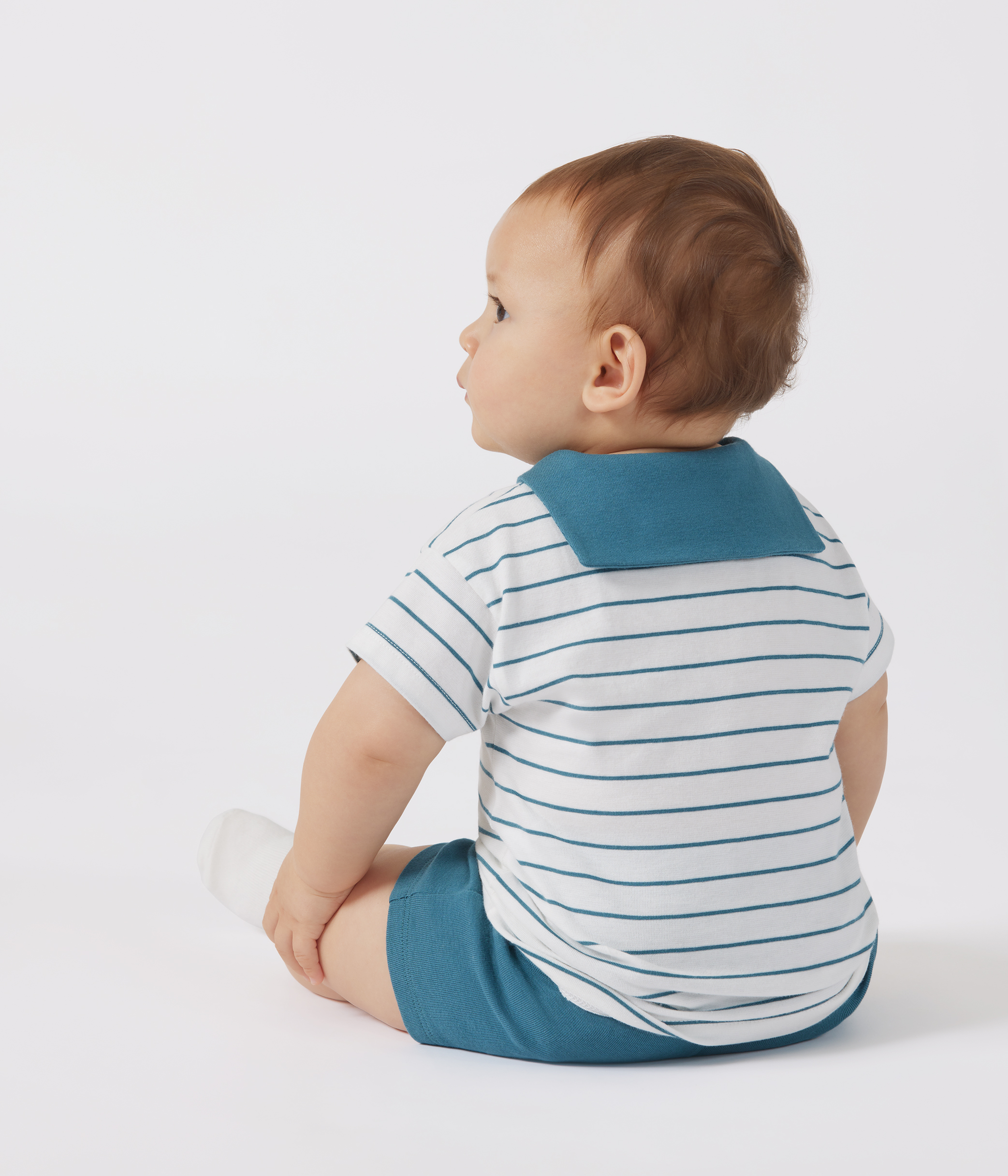 Babies' two-piece cotton set with a striped T-shirt and plain shorts