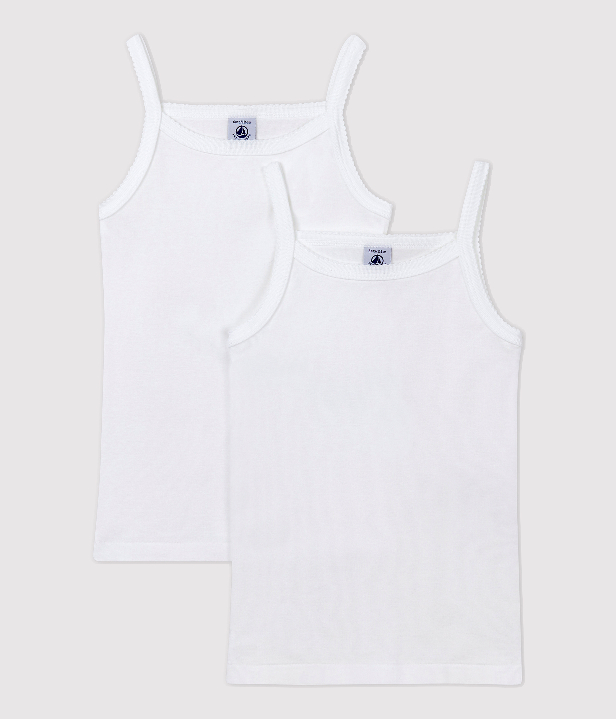 - 2 strappy vests in Petit Bateau's iconic rib knit.