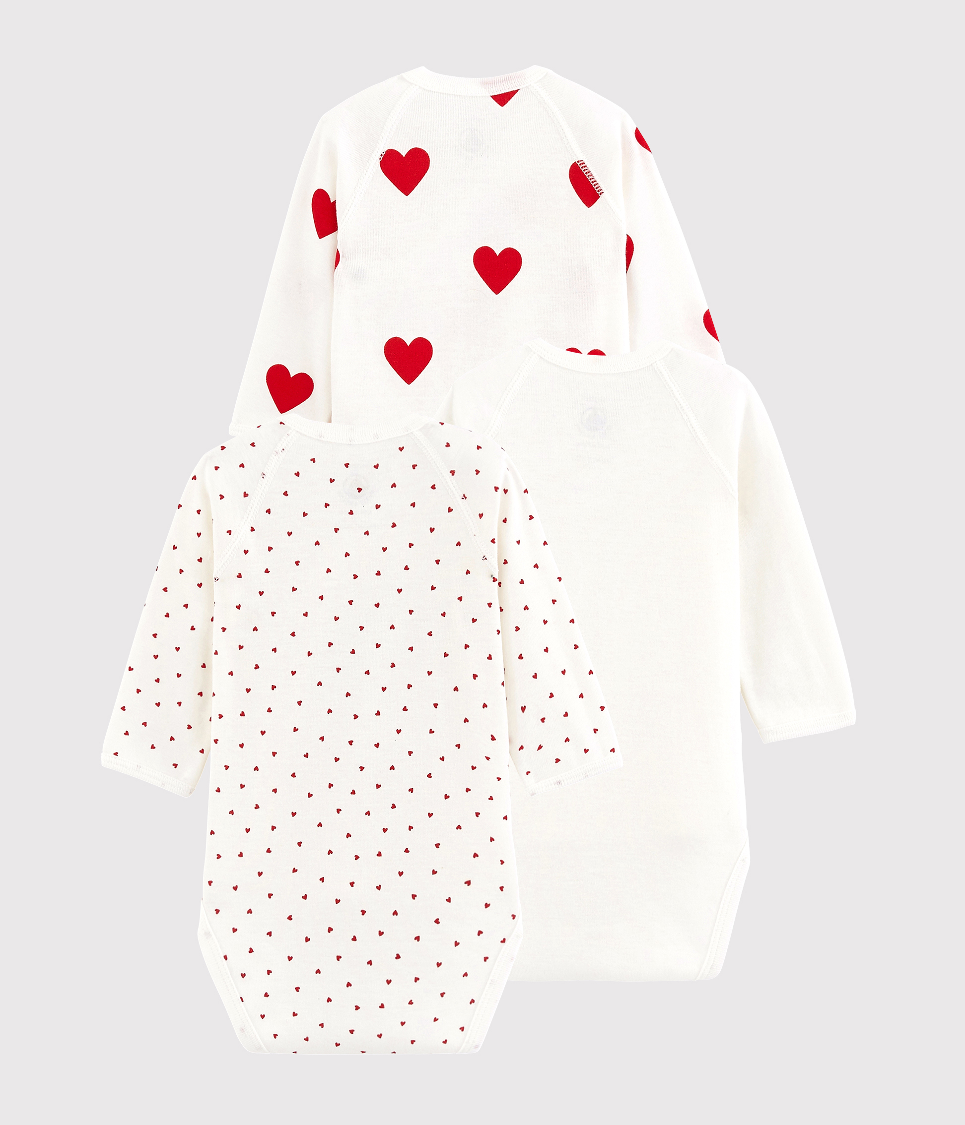 - 3 long-sleeved wrapover bodysuits in Petit Bateau's iconic rib knit.