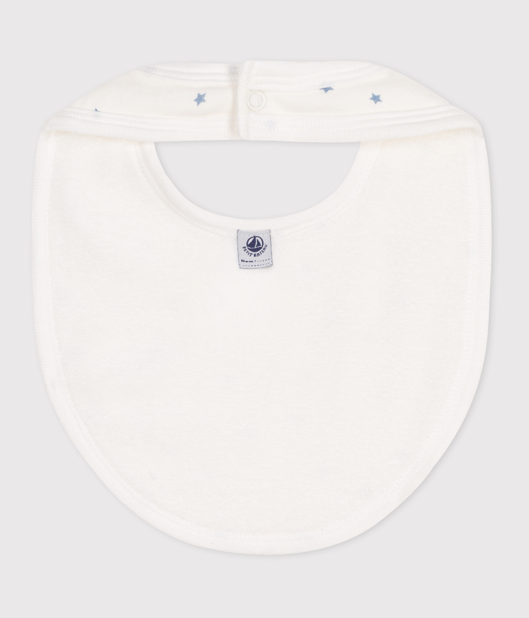 - The bib fastens with poppers at the back.